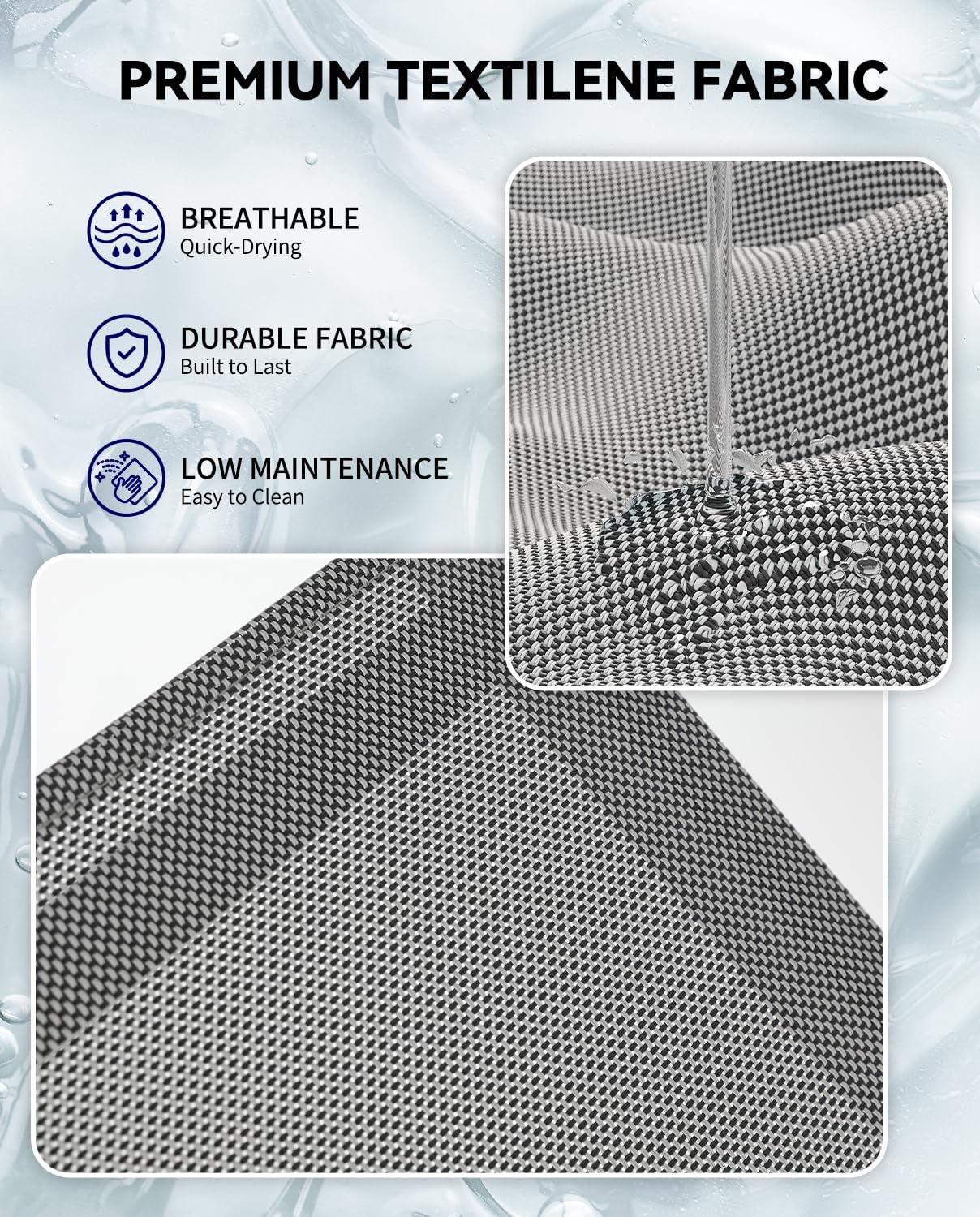 - 【ALL-SEASON COMFORT】Crafted from premium Textilene fabric, our outdoor chaise lounge is weather-resistant and quick-drying, perfect for all-season use. Its flexible and breathable design keeps you cool on hot days, while the easy-to-clean surface requires only a quick wipe with a damp cloth for effortless maintenance and lasting comfort