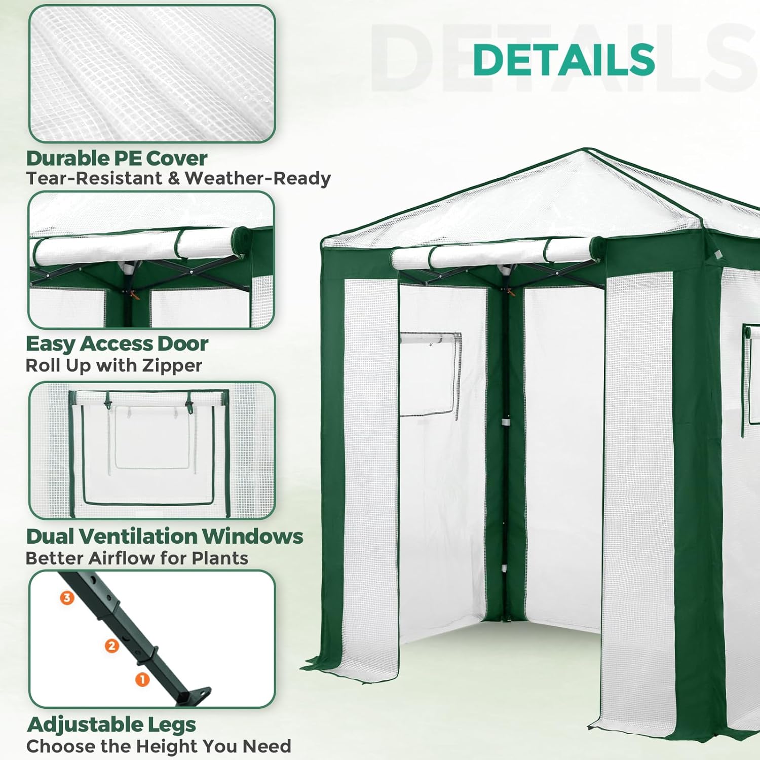 EAGLE PEAK 6x4 Portable Walk in Greenhouse with Polyester Reinforced Corners, Instant Pop up Indoor Outdoor Gardening Green House, Roll Up Zipper Entry Door and Mesh Windows, Green/White