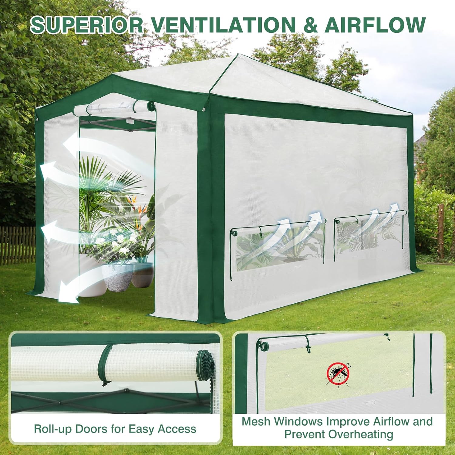 EAGLE PEAK 12x8 Portable Walk in Greenhouse with Polyester Reinforced Corners, Instant Pop up Indoor Outdoor Gardening Green House, Roll Up Zipper Entry Doors and Mesh Windows, Green/White