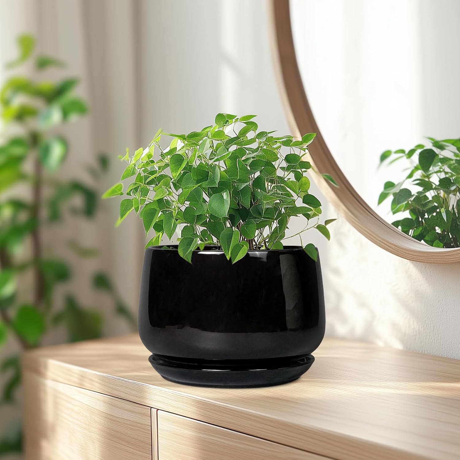 - Modern Planter: Adopting elegant modern design, classic ceramic indoor plant pots with curved contours, black round planter add highlights to your indoor or outdoor space decoration, suitable for various styles of home decor, room decor, bathroom decor, living room decor, office decor, garden deocr