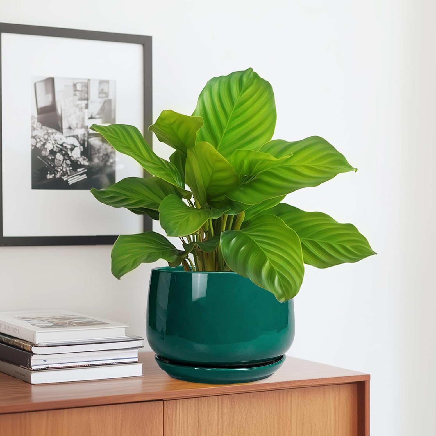 - Durable and Premium Ceramic Pots for Plants: This round planter is made of premium ceramics, ceramic with a smooth glaze, beautiful appearance, and durability. This ceramic planter is not easily deformed or damaged(NOT INCLUDE PLANT)