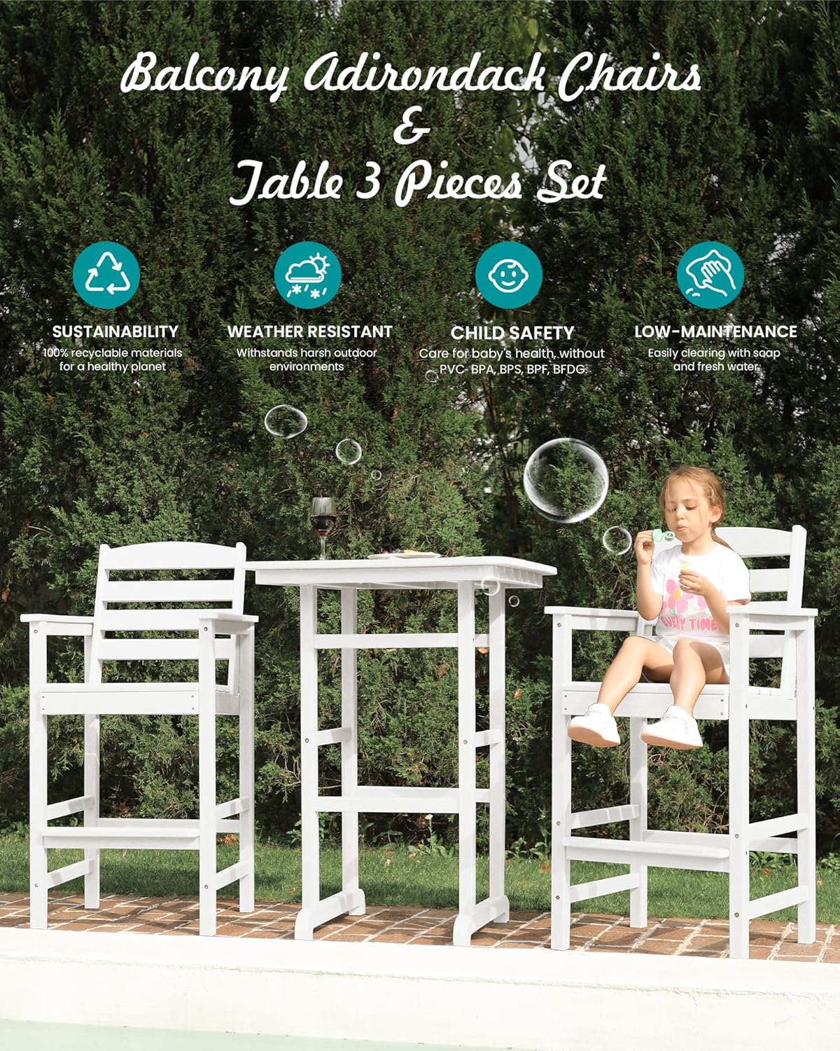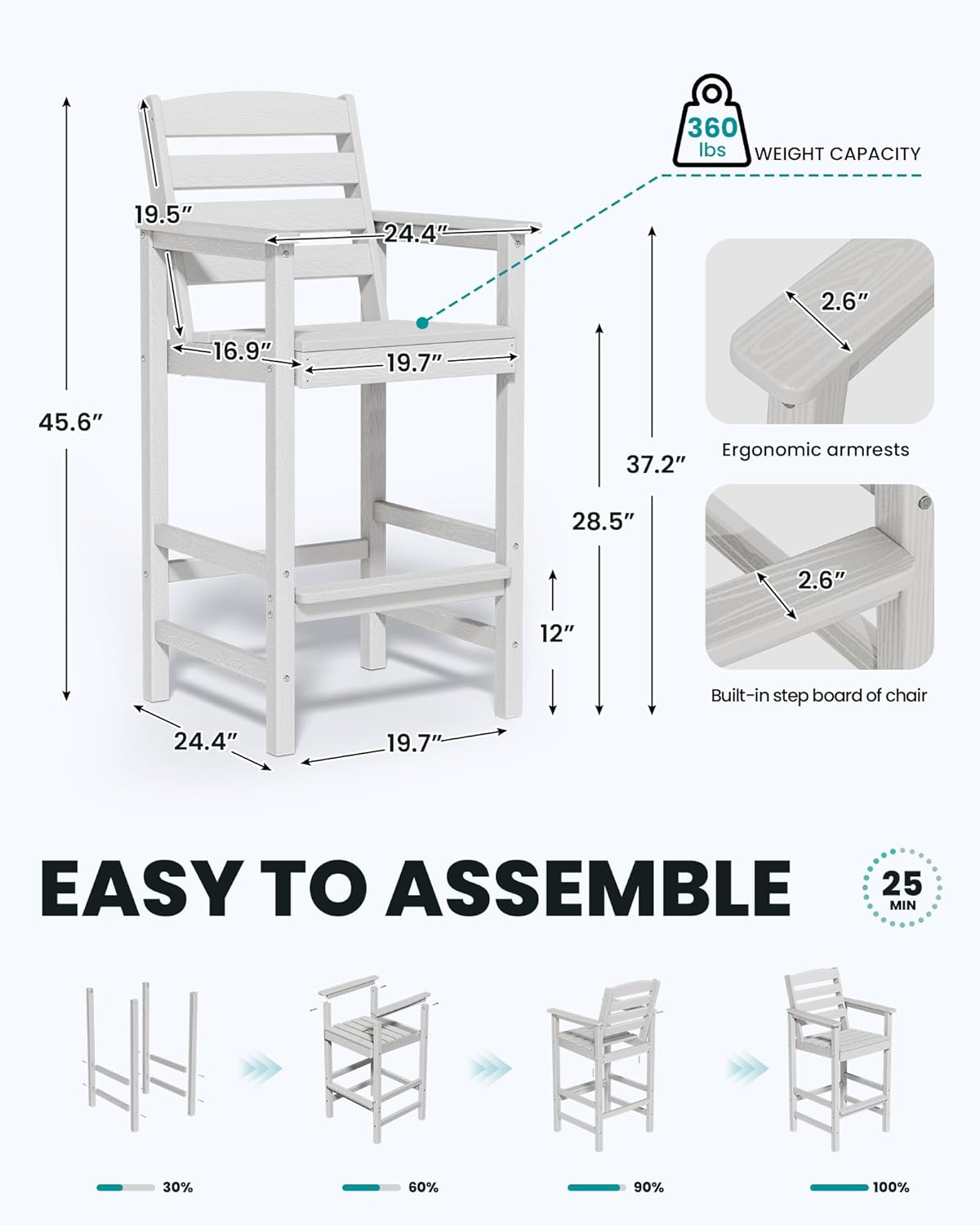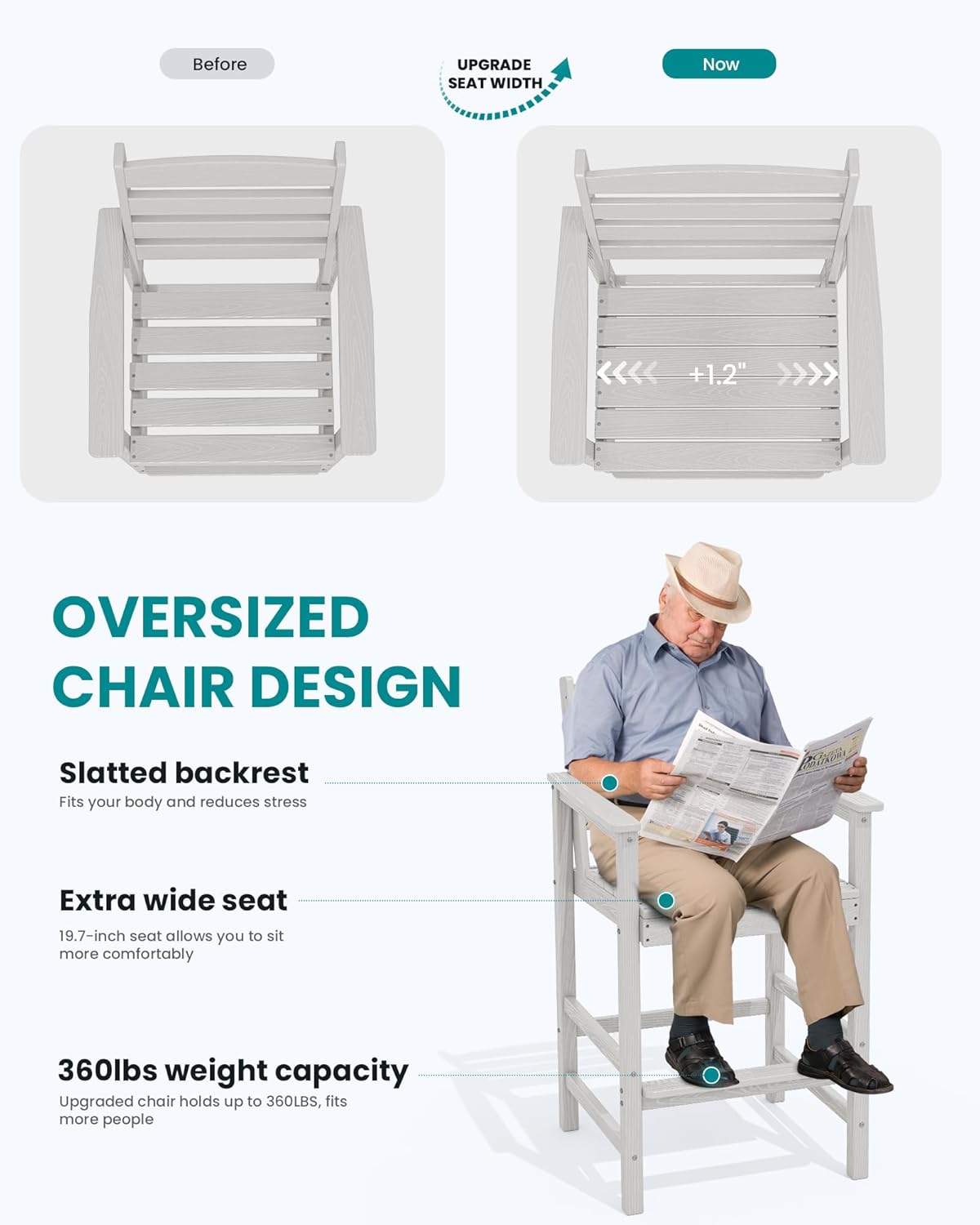 SERWALL Tall Adirondack Chairs Set of 2, Oversize Balcony Adirondack Chairs Set, Outdoor Bar Height Barstools Widened Chair Set for Bistro, Poolside, Garden, White