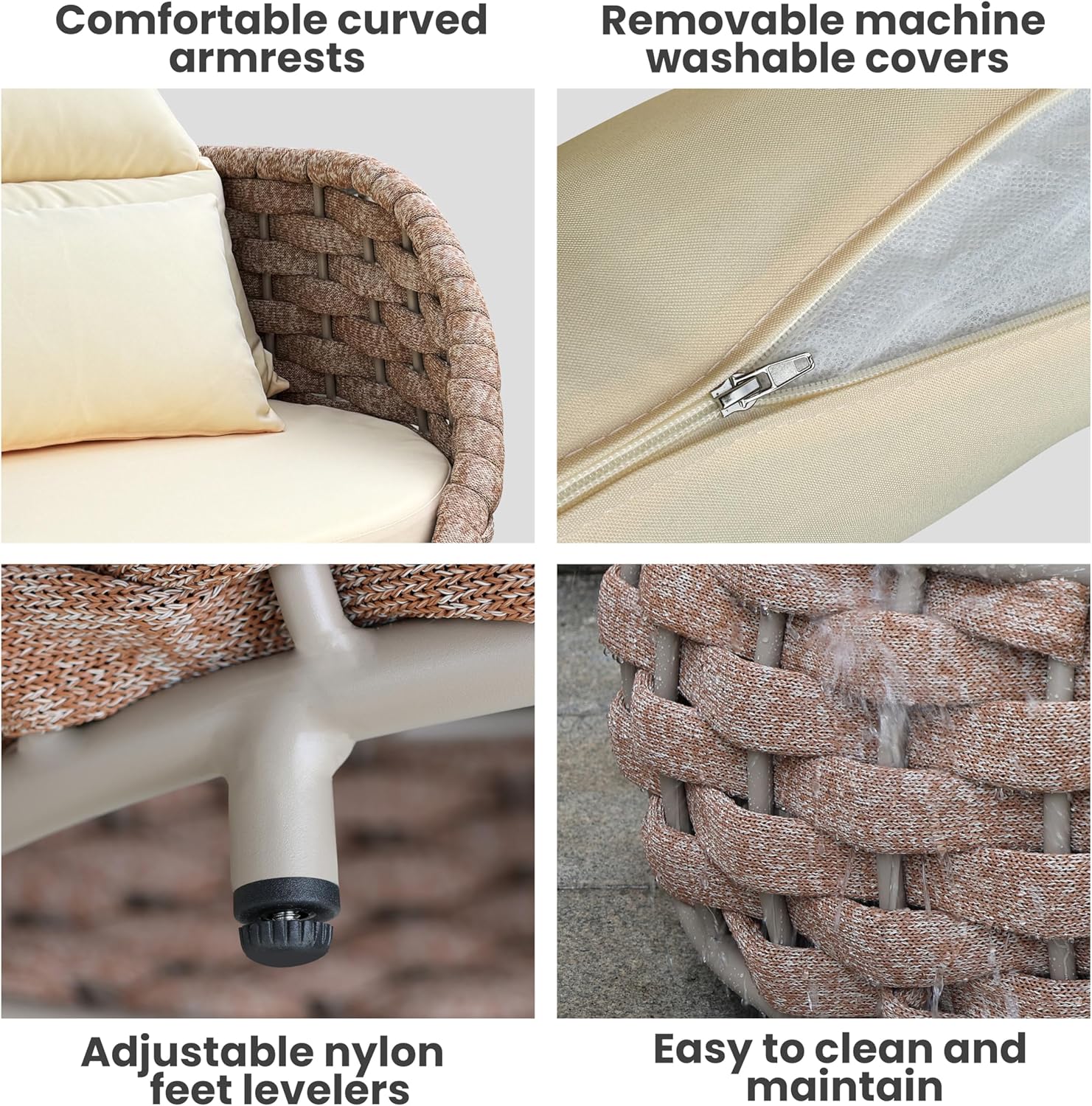 Aluminum Deck Outdoor Furniture Set: 6 Pieces Rope Patio Conversation Sofa Set - Modern Woven Porch Couch Set Cushioned - No Assembly All Weather for 660lbs Yard Garden Lanai Hotel, Terracotta