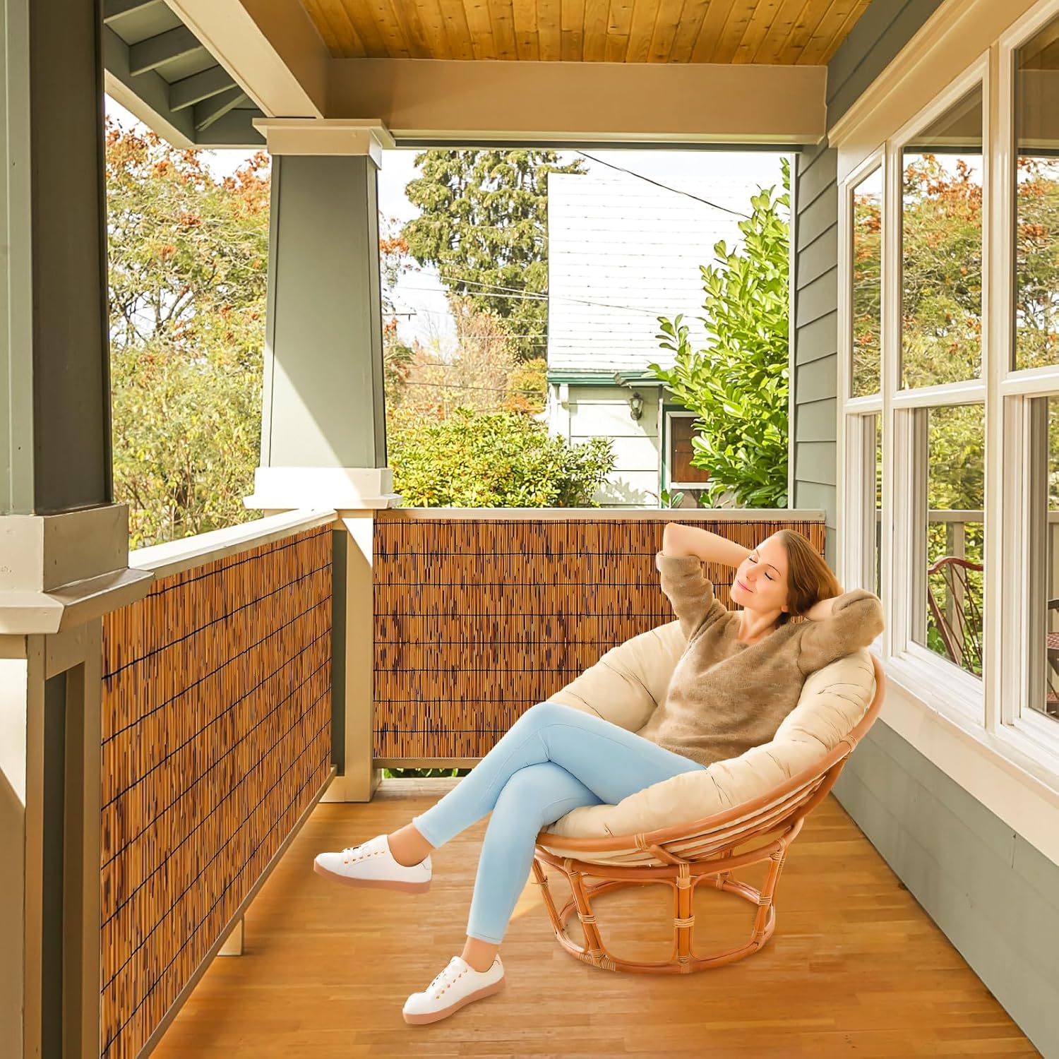 - Natural Reed: The bamboo curtains for patio outdoor uses strictly selected natural wild reeds as weaving materials, which are fine and uniform, tough and straight, and have a delicate and smooth feel. The bamboo privacy fence is made using original hand-woven methods. The workmanship is fine and unique, creating a classical work of art. The faint scent of grass fills the surroundings, creating a simple and elegant atmosphere.