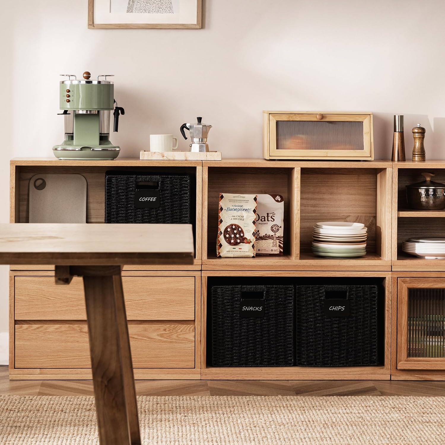 UBBCARE 4 Pack Wicker Basket, 13×13 Storage Cubes with Label, Foldable Cube Storage Bin with Handle, Square Storage Basket for Shelves, Woven Paper Rope Basket for Organizing, Black