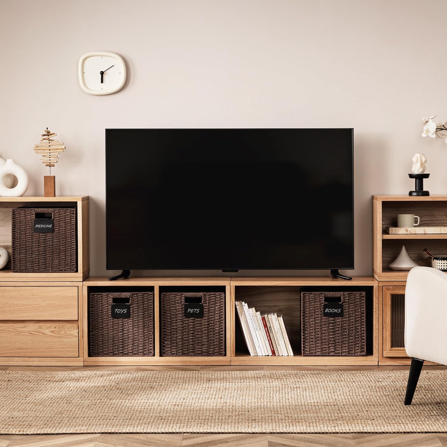 - Perfect size basket: 13L×13H×12.2W basket for storage, large capacity, convenient to store more daily necessities. The size of these storage cube bins fits the IKEA KALLAX shelf unit series, living room TV cabinet, shelves, closets office table and nursery room cube bookshelves.