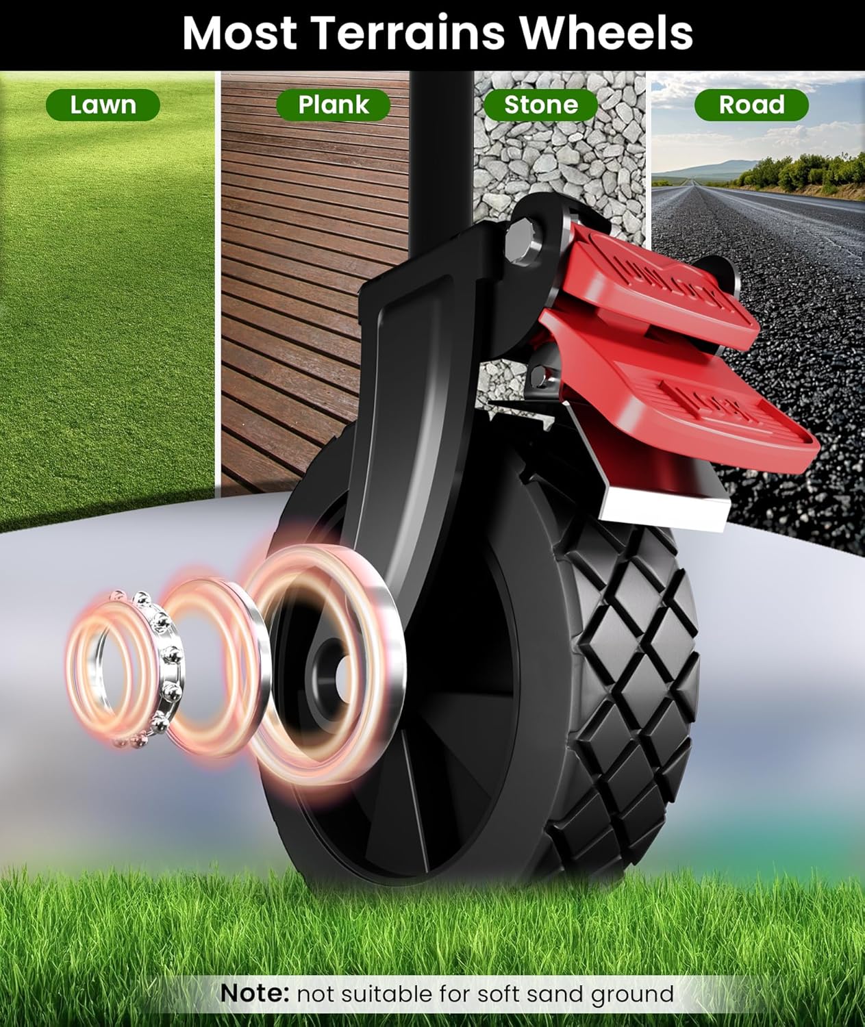 - Multi-Terrain Wheels with Brakes: Equipped with durable, all-terrain wheels and a reliable braking system, this collapsible wagon is designed to handle various surfaces with ease and securely. Whether on grass, gravel, or pavement, the folding wagon ensures a smooth ride and controlled stops, making it the ultimate companion for all your outdoor adventures