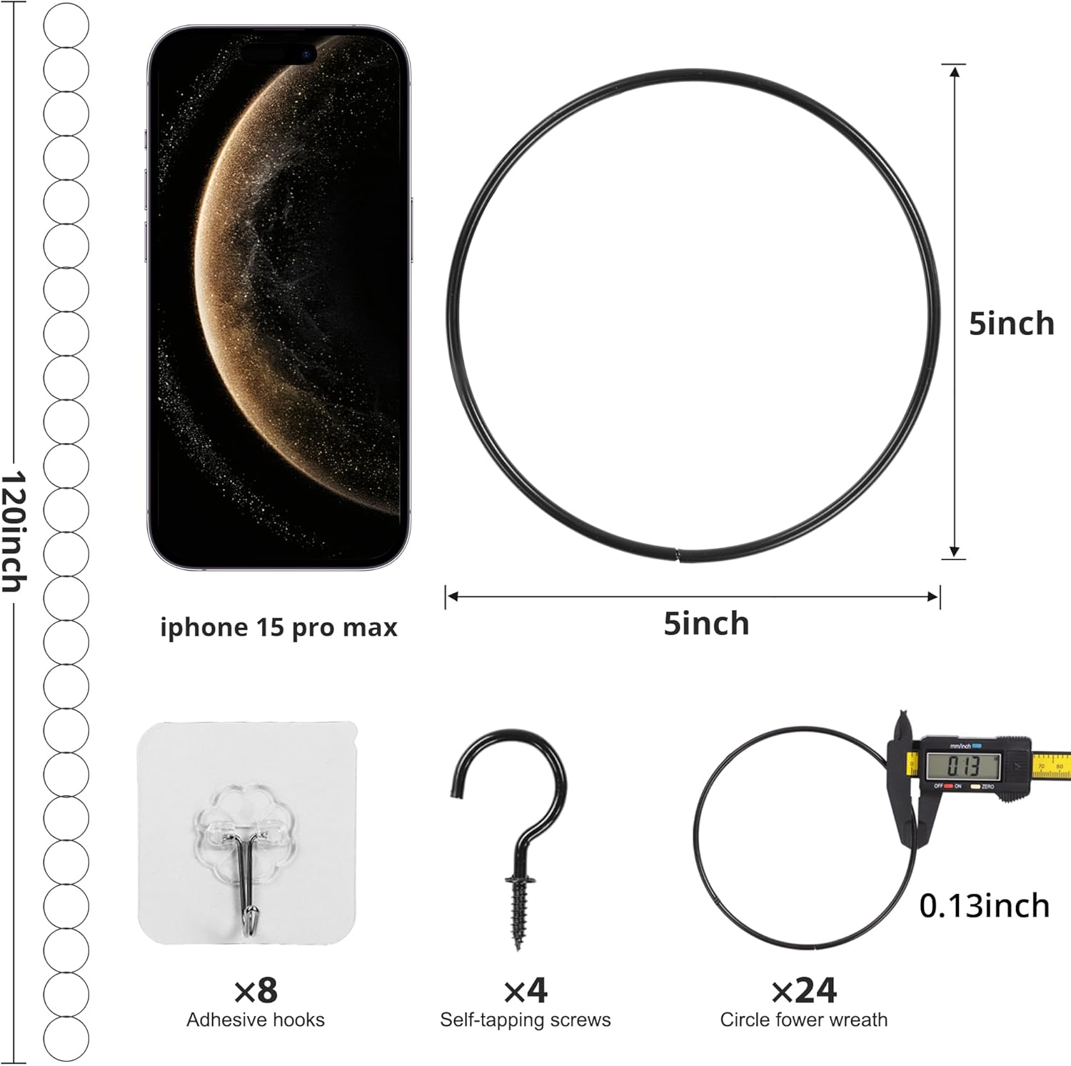 24 Pcs Chain Trellis for Climbing Plants, 120 Inch Long Metal Plant Trellis Indoor Outdoor, Garden Wall Vine Support Trellis, Plant Accessories for Ivy, Peonies, Circle Design Black