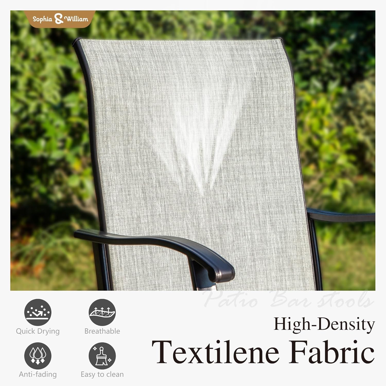 - 【Barheight Patio Table and Chairs】Combines ergonomic high back design with seamless swivel functionality, this bar set provides a stylish and elevated seating option that adds flair to any space. Patio bar table features a classic and neat tabletop with 1.57 umbrella hole