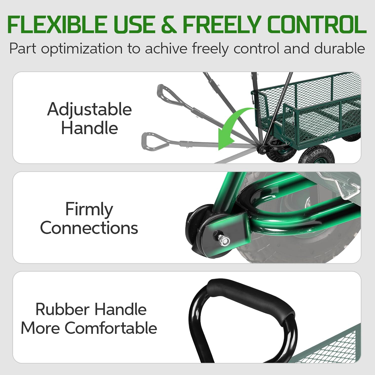 TAIFA Heavy Duty Steel Garden Cart 880 Lbs Capacity with Removable Sides for Yard Lawn and Farm, Metal Utility Wagon with 180° Rotating Handle, Green
