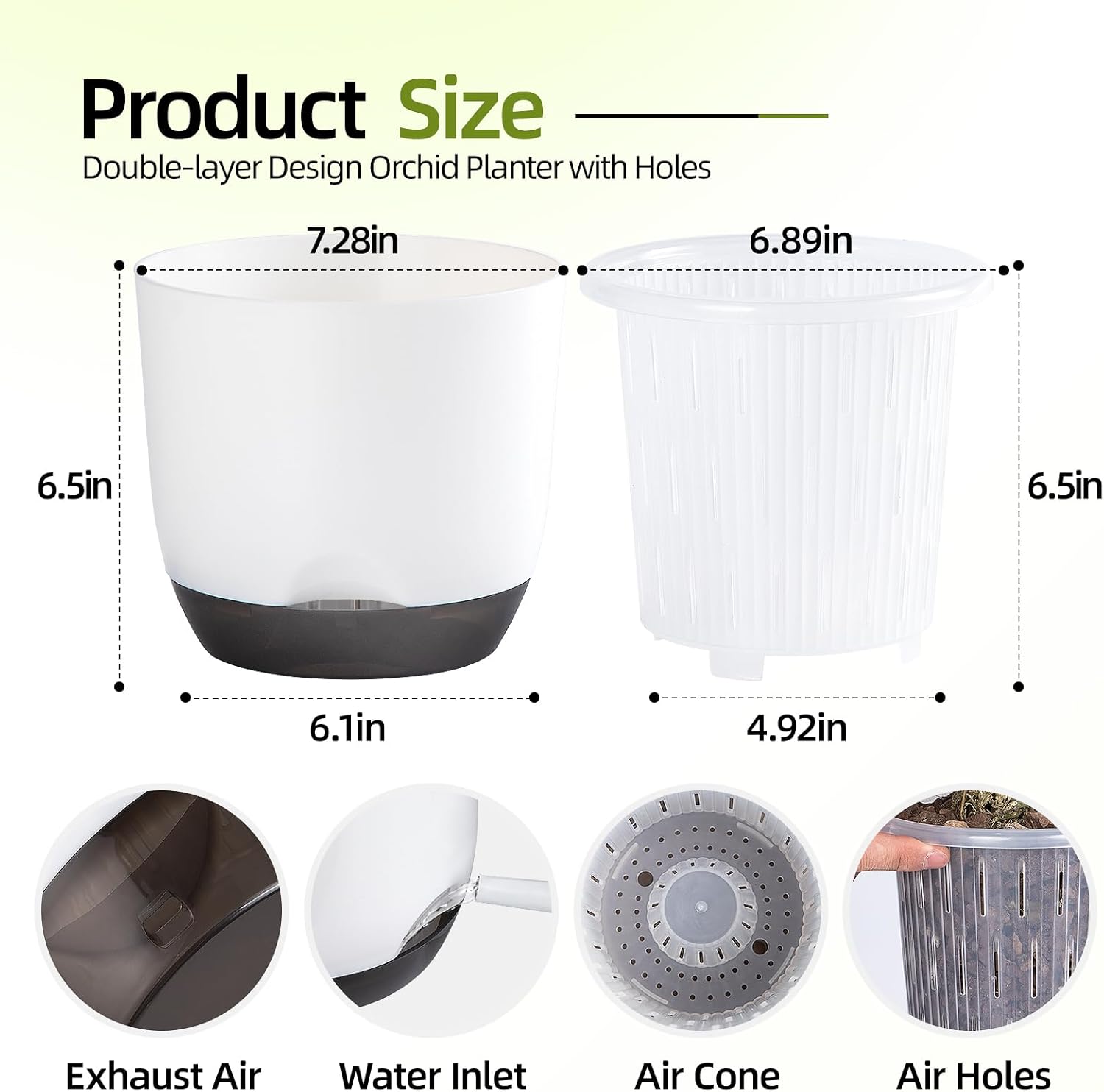 - GOOD AIR CIRCULATION: Fresh-air enters through the holes of the inner-pot, then exhausts through the bottom holes of the outer-pot, to keep great air circulation and growth of orchid roots