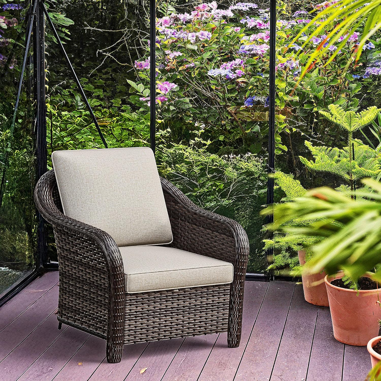 - Sturdy and Durable: The outdoor furniture set is made of steel frame and PE wicker, ensuring that it will be more sturdy. Fade-resistant fabrics of cushions is stain & fade resistance, tear & wear resistance