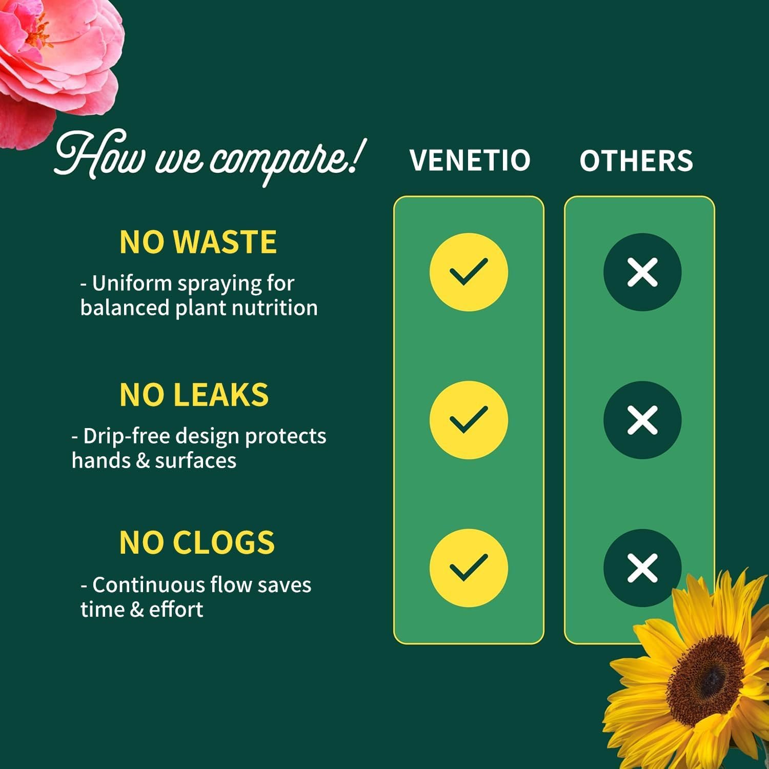 VENETIO 8-Dial Hose Nozzle Sprayer for Liquid Fertilizer & Chemicals | Multi-Purpose Lawn & Garden Spreader Tool for Watering, Fertilizing, Pet Washing & Outdoor House Cleaning, 16oz Dispenser Bottle