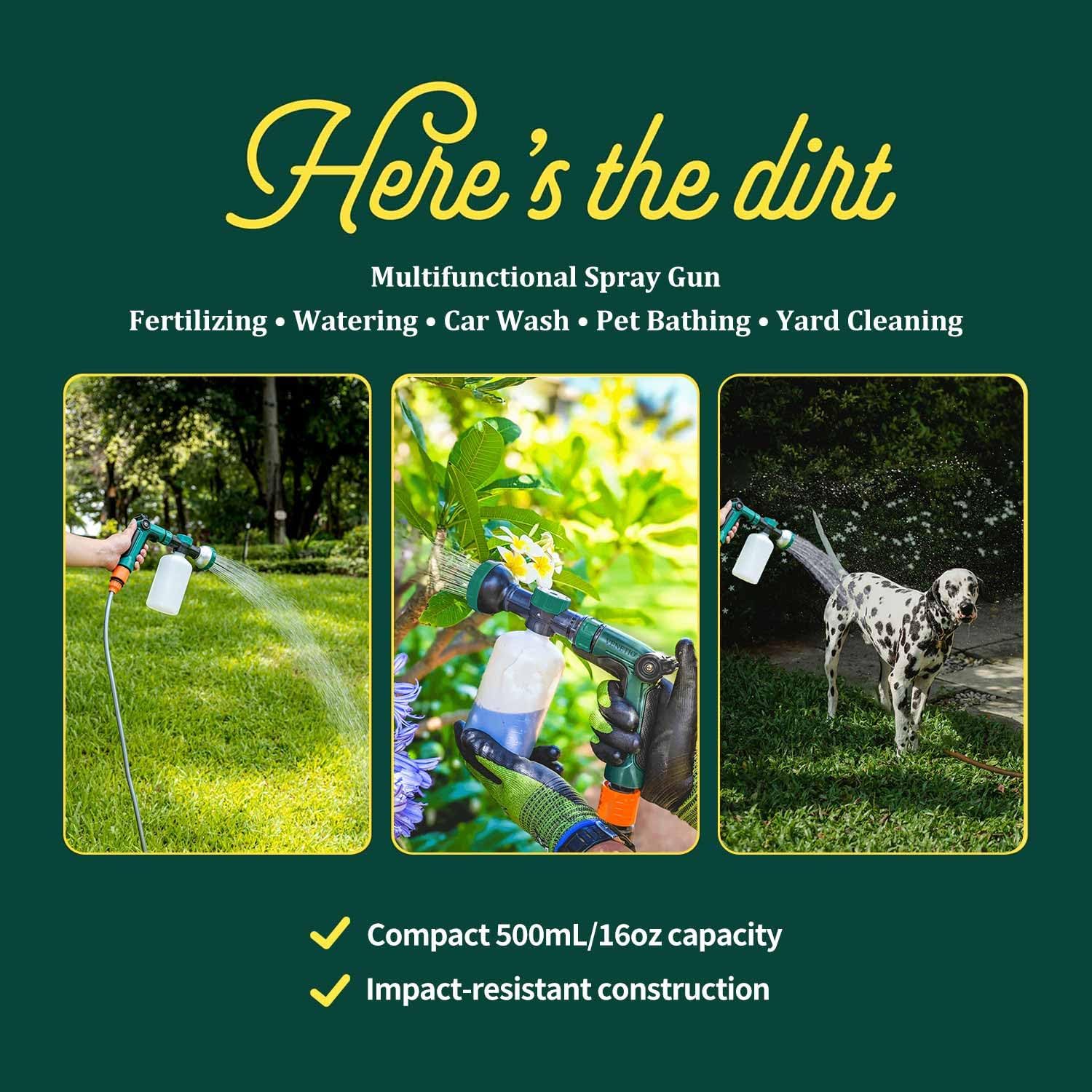 - đź’š From Garden to Garage: Use this versatile hose-end sprayer for watering plants, fertilizing lawns, and cleaning outdoor spaces.