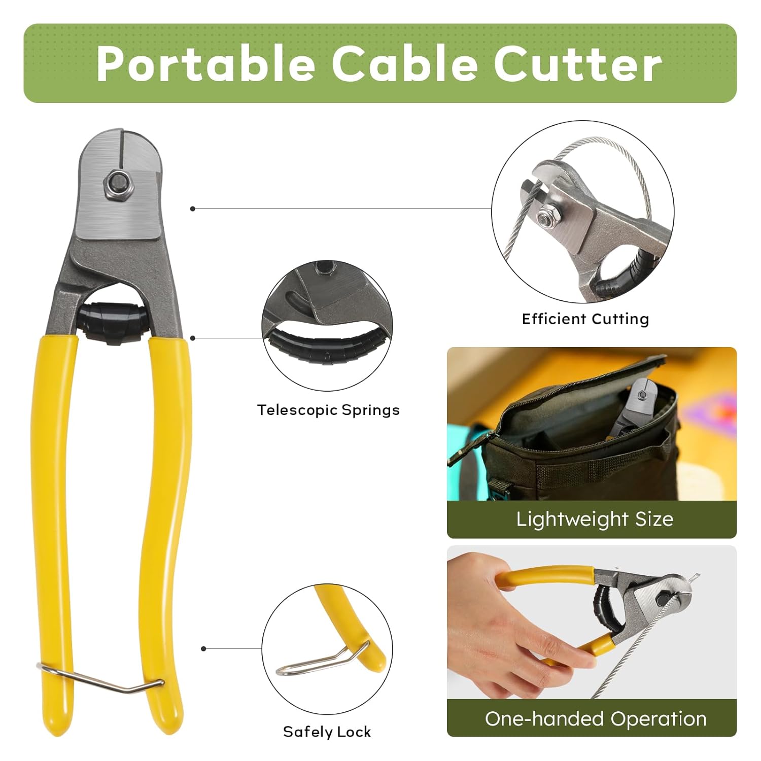 - Complete Kit for Easy Installation: Includes 24 M3 aluminum sleeves, 12 M3 thimbles, and 1 professional yellow cable cutter. These tools ensure secure and professional connections, simplifying the wire rope installation process