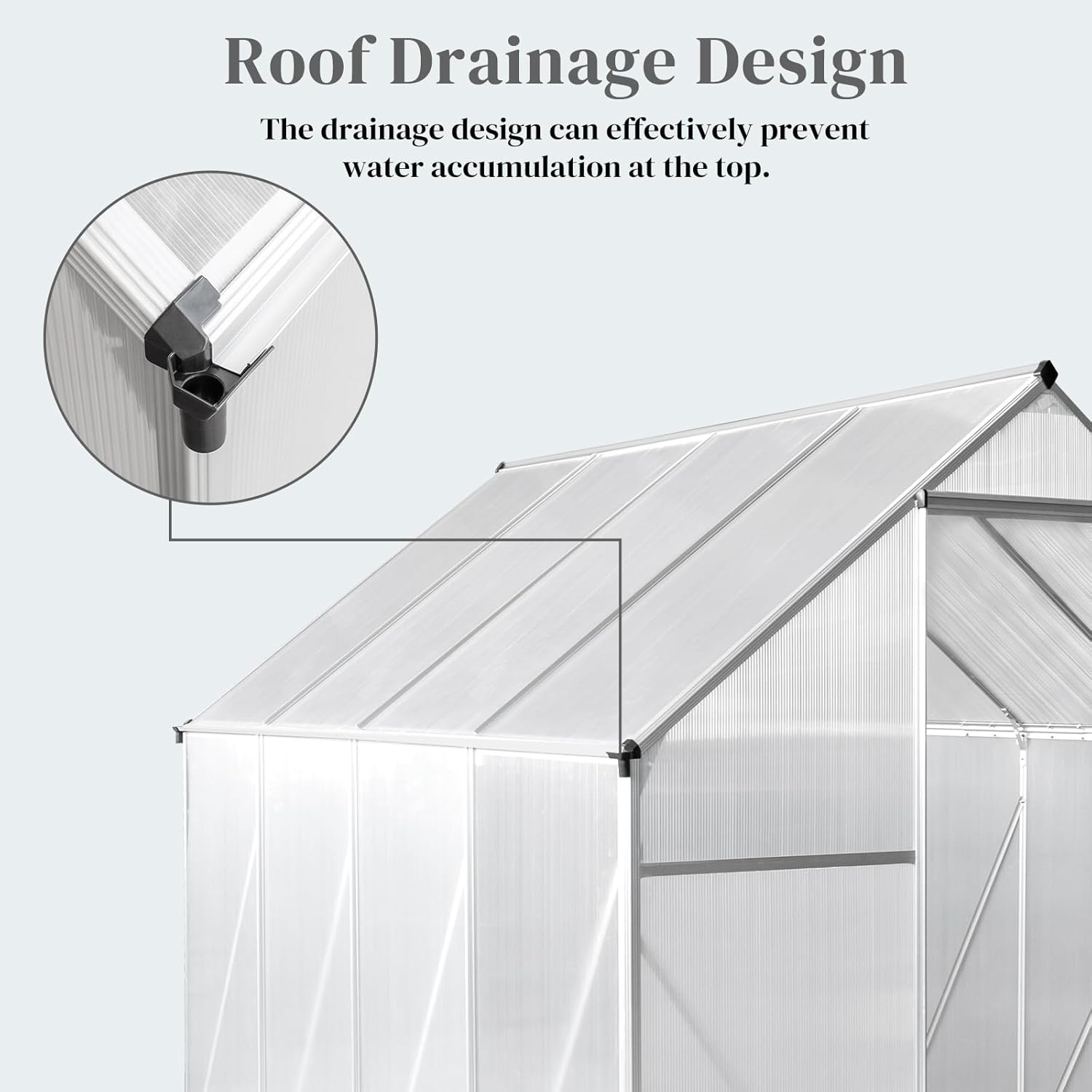 - Professional-Grade Construction - Built with a sturdy silver aluminum frame and crystal-clear polycarbonate panels, this green houses for outside offers excellent insulation and UV protection, creating an ideal environment for growing vegetables, flowers, and herbs.
