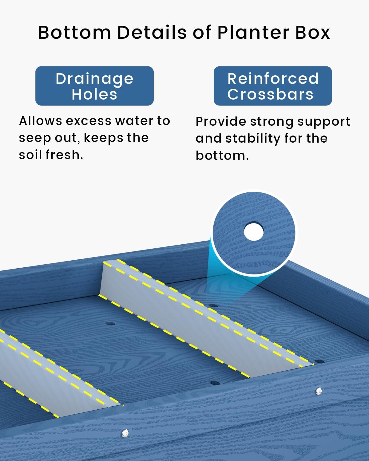- Long-lasting Planter Box: Thanks to the superior performance of HDPE material in outdoor environments, this outdoor garden box is built to last for over 10 years, no matter the setting or climate.