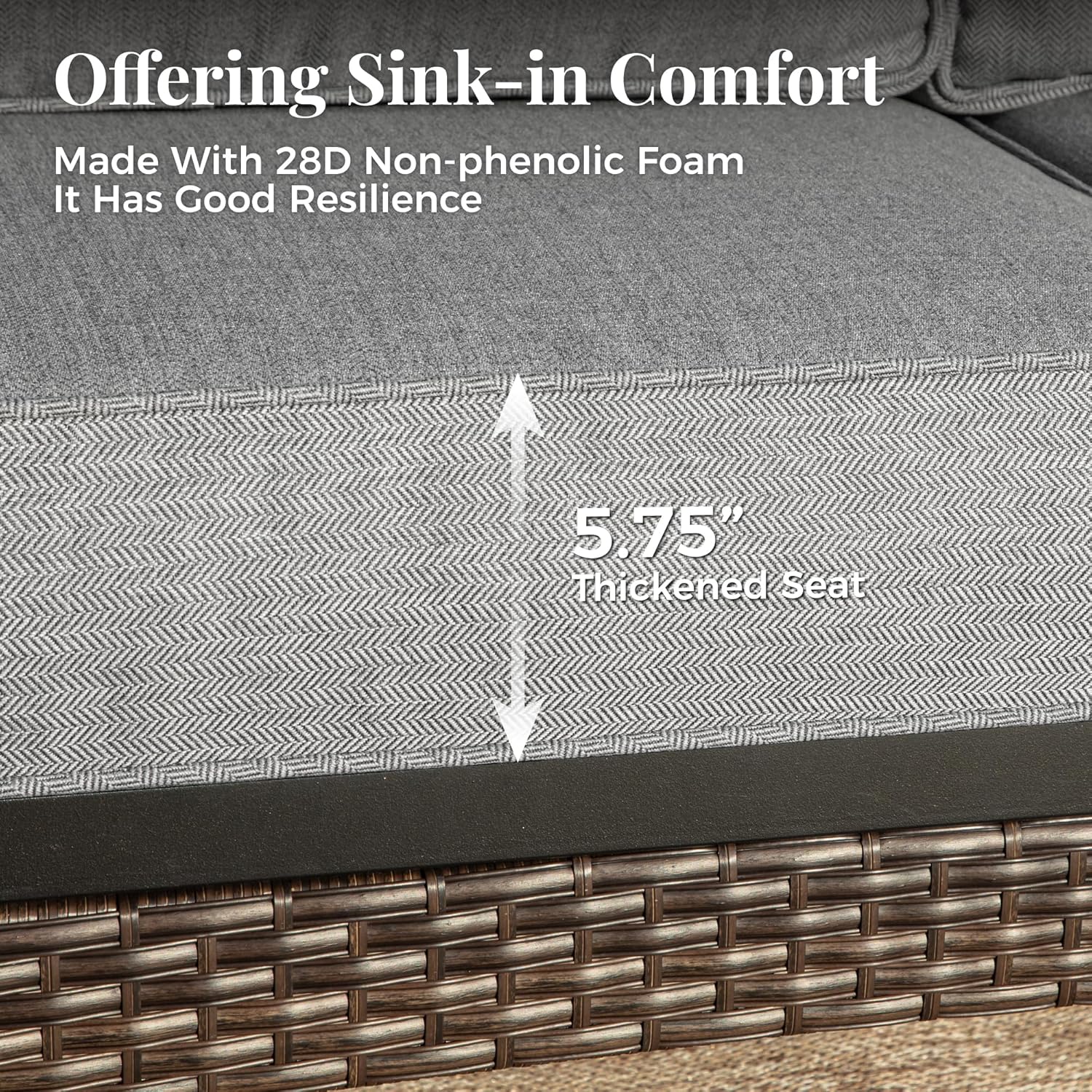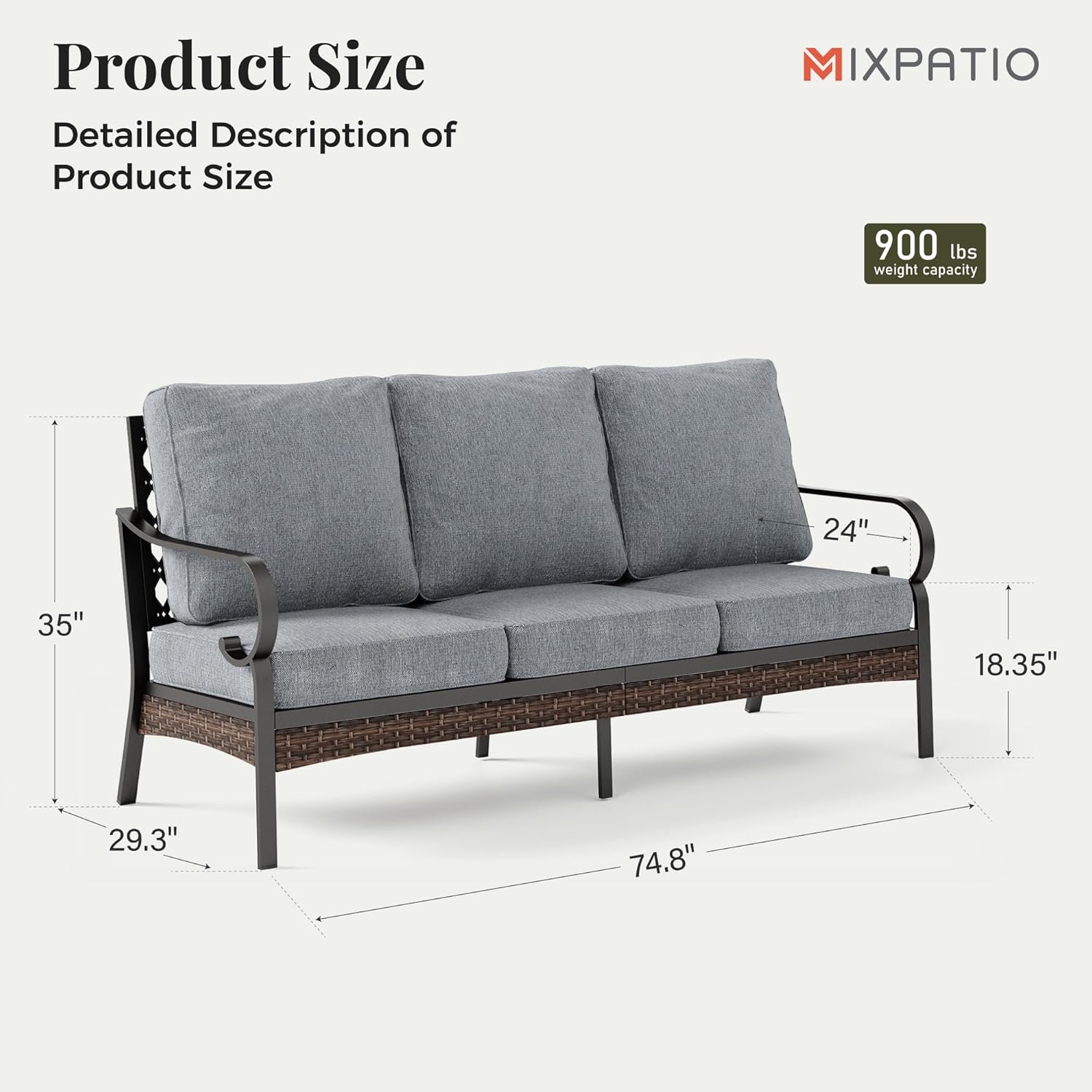 - Superior Comfort: The MIXPATIO Patio Furniture Sofa provides the ultimate relaxation experience with its deep seating and plush 5.75” cushions. Sink into luxurious comfort as you unwind on this outdoor sectional couch, designed to offer a cozy retreat in your lawn, backyard, porch, or deck