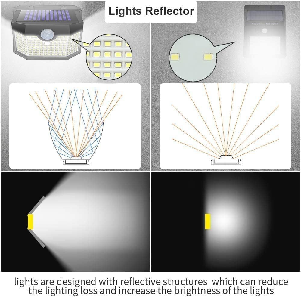 HMCITY 120 LED Outdoor Solar Lights with Motion Sensor and 3 Lighting Modes, IP65 Waterproof Wide Solar Wall Lights Ideal for Garden Patio Yard (Front Button 4Packs, Daylight White)