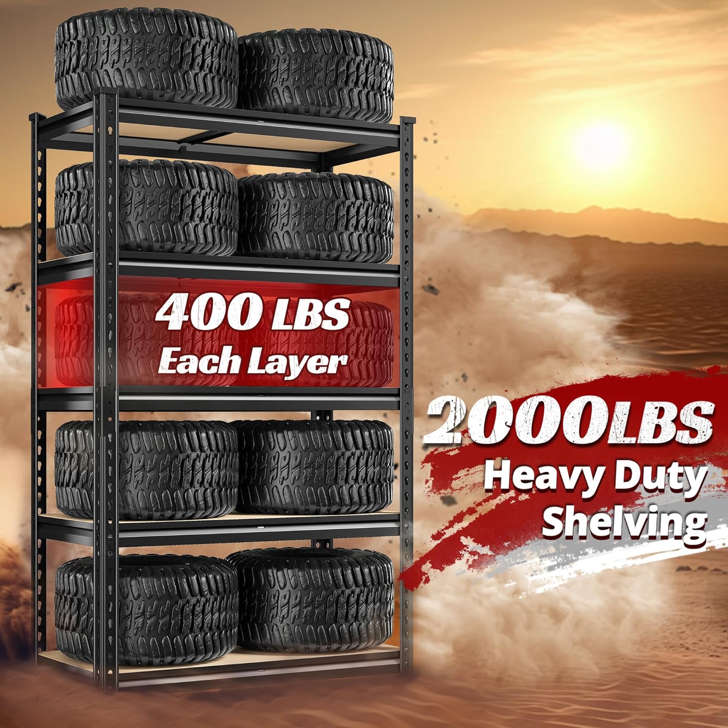 - ă2000LBS Garage Shelving Heavy DutyăREIBII's metal shelves consist of thickened metal frame that can hold up to 400 pounds per shelf for a total load capacity of 2000 pounds, which makes the storage shelves more stable and able to store many items for a long time