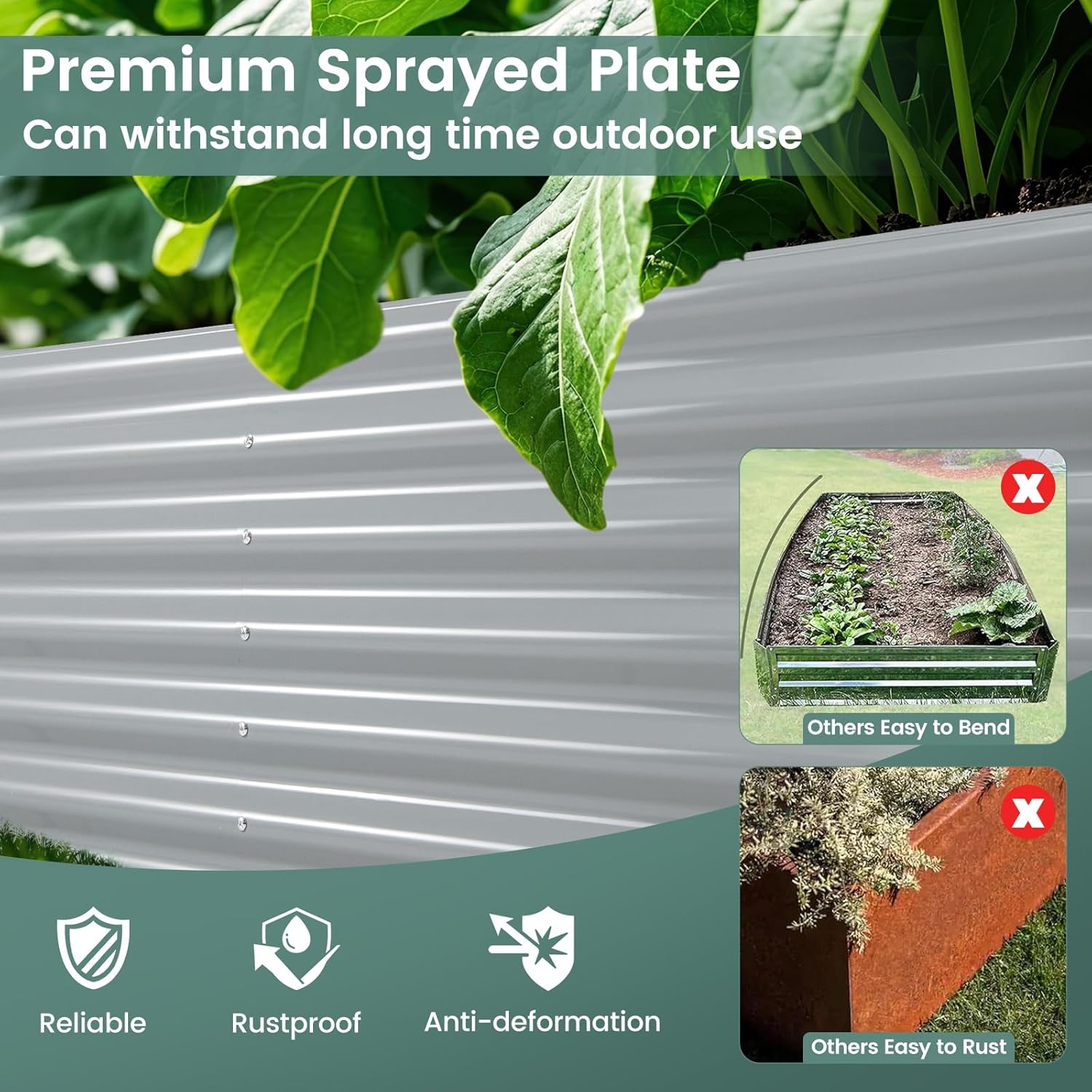 - 【 Premium Sprayed Plate 】 Constructed with thickened metal plates, this elevated garden planter is designed to withstand the test of time. Besides, the sprayed plate also ensures reliable rustproof performance and anti-deformation capabilities.