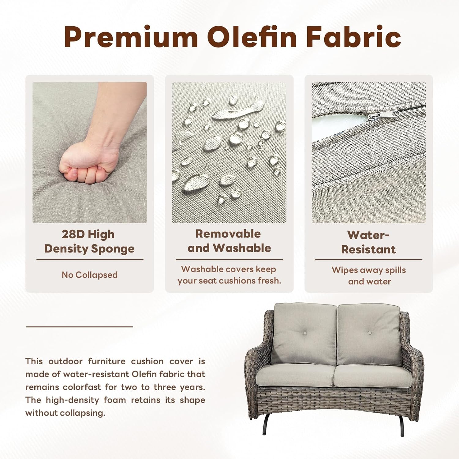 - Stylish Addition to Your Patio Décor:The timeless design of this patio glider loveseat adds a touch of sophistication to any outdoor space. Its neutral tones and wicker texture blend seamlessly with existing outdoor furniture and décor.