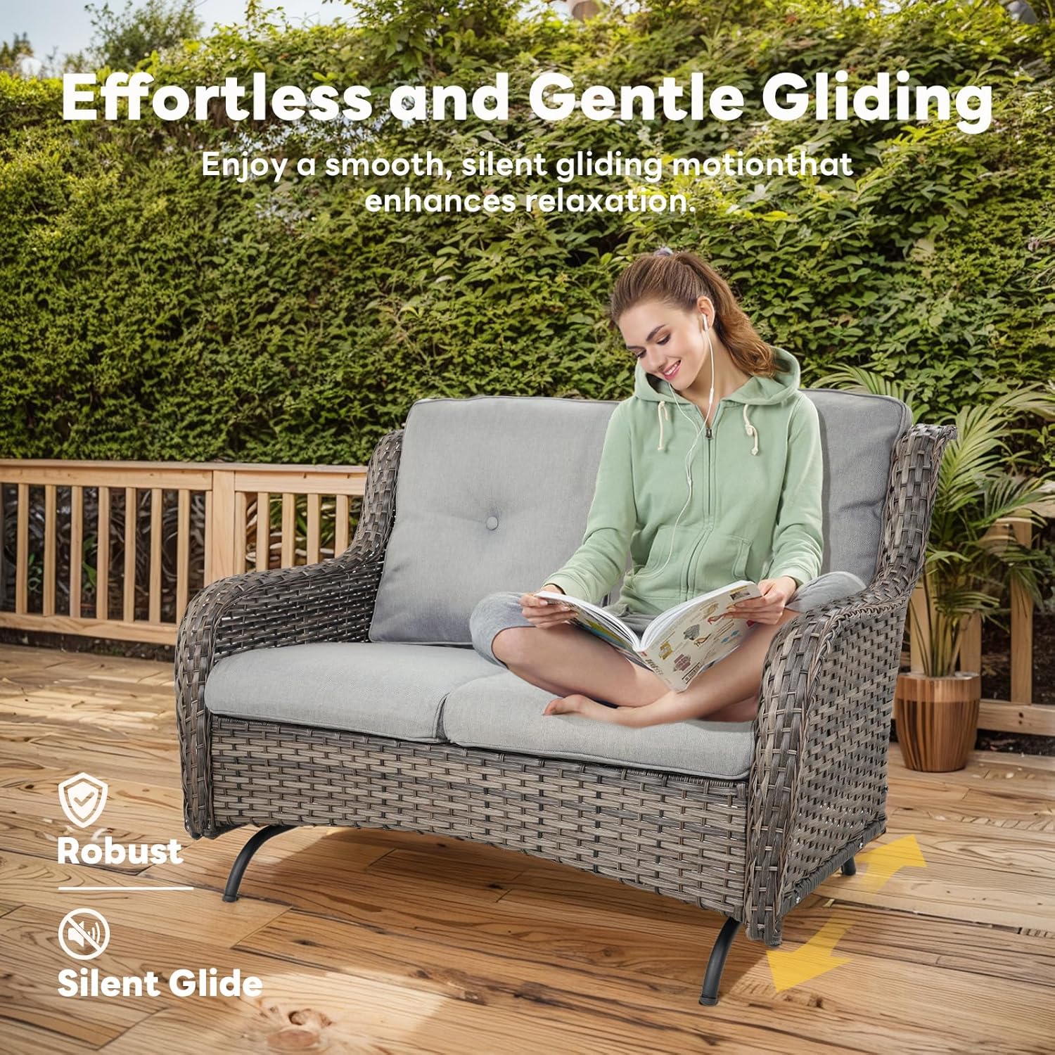 - Smooth Gliding Motion for Relaxation:Experience the ultimate comfort with Belord outdoor glider loveseat, featuring a smooth and noiseless gliding mechanism. Perfect for unwinding, the patio glider loveseat provides a gentle back-and-forth motion to enhance relaxation.