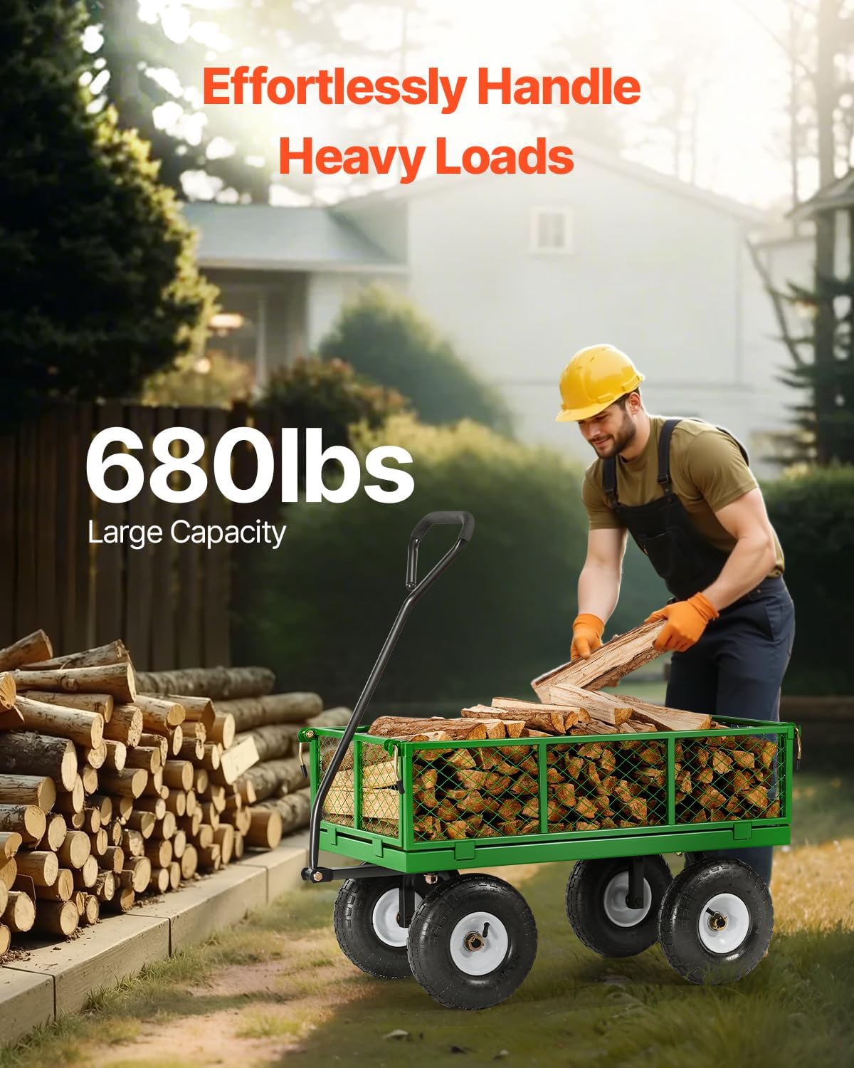 VEVOR 680 Lbs Steel Garden Cart on Wheels, Heavy Duty Garden Wagon Cart Pullable, Metal Outdoor Utility Yard Wagon Carts with 10" Tires, Mesh Removable Sides and 180°Rotating Handle