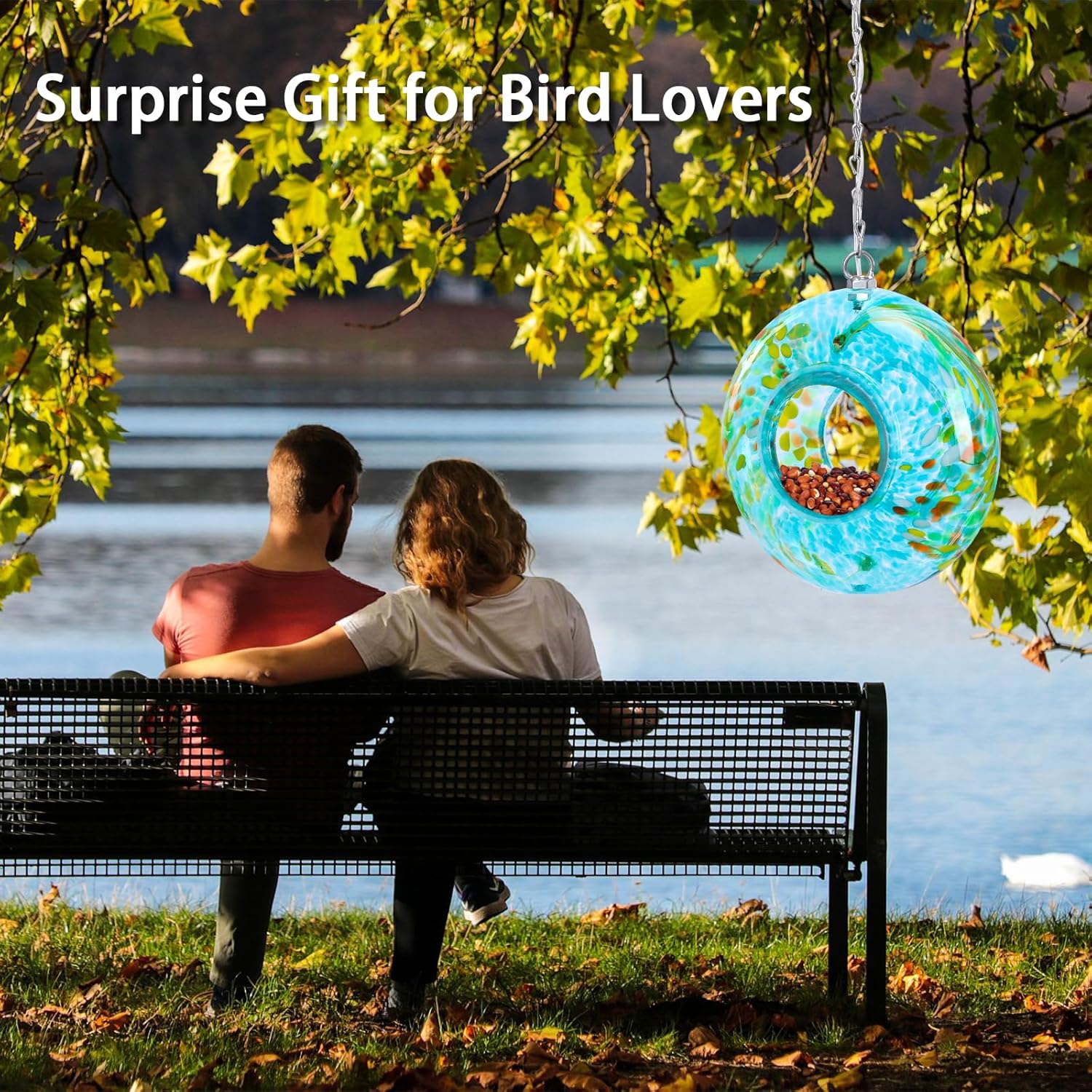 - Hanging Bird Feeder: Mosaic hang bird feeders for outdoors is made of strong glass. Birds can eat from the rim or hop inside during bad weather