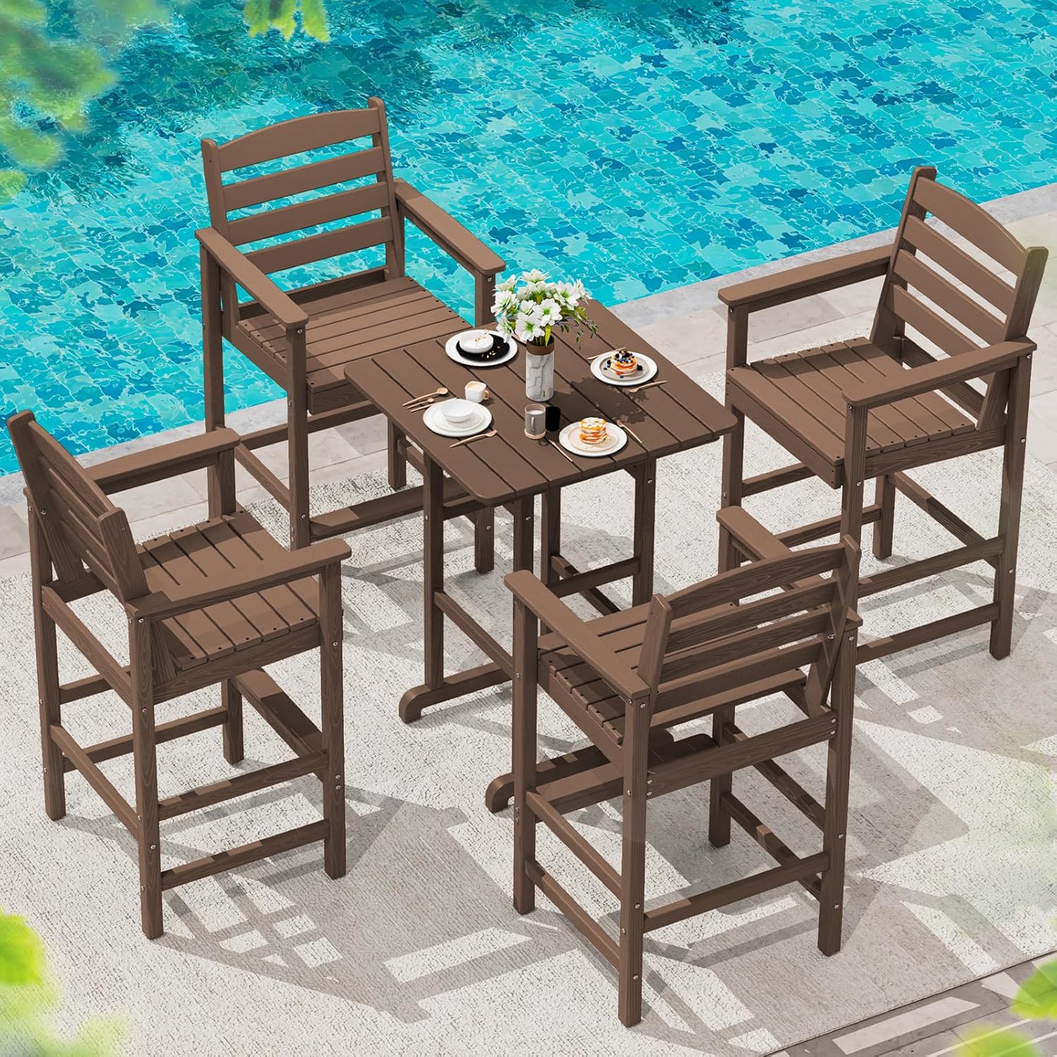 SERWALL 5 Pieces Outdoor Patio Bar Set, Oversize Tall Adirondack Bar Chair and Table Set, Brown