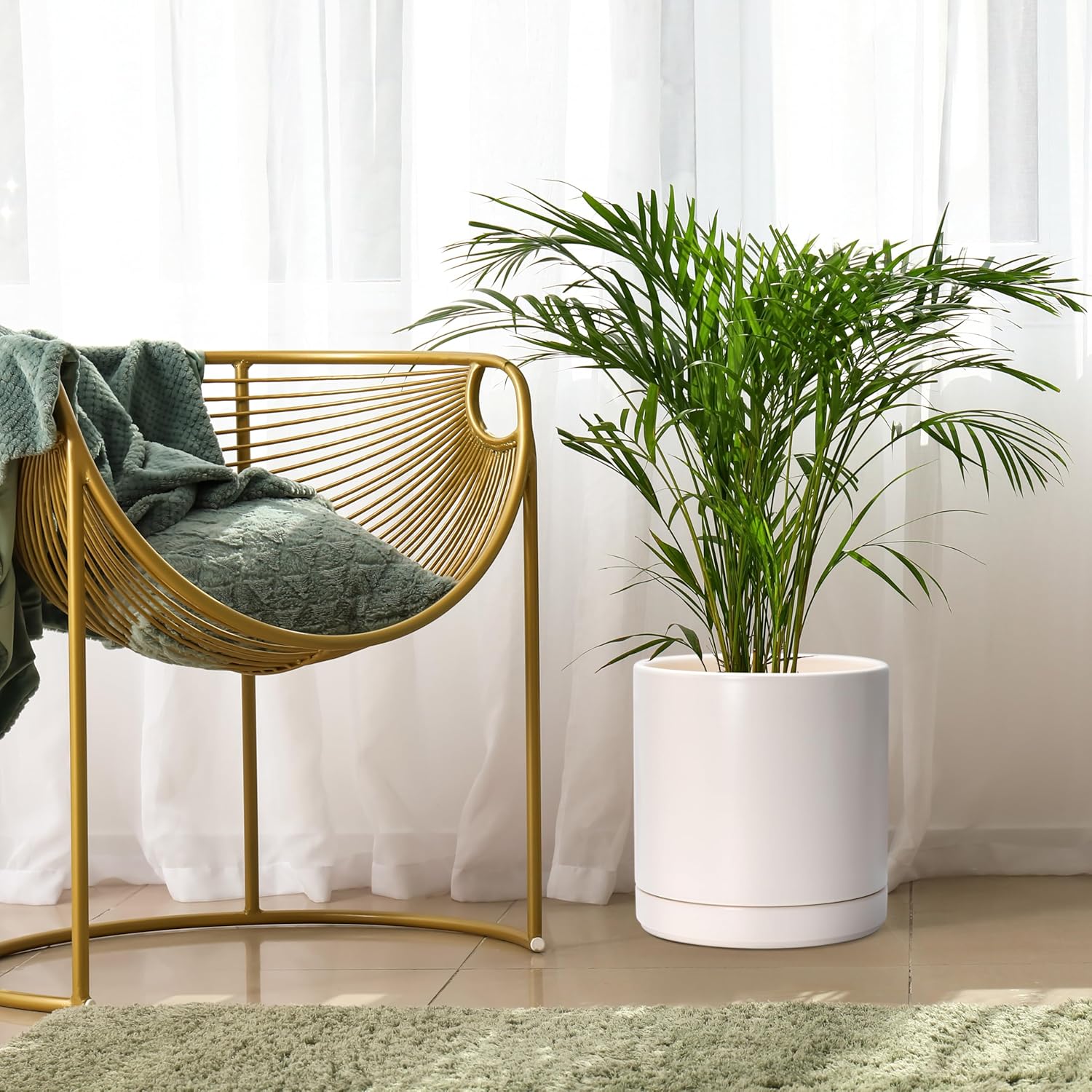 - Simple, elegant, and modern cylindrical straight round planter pot with saucer and drainage hole.