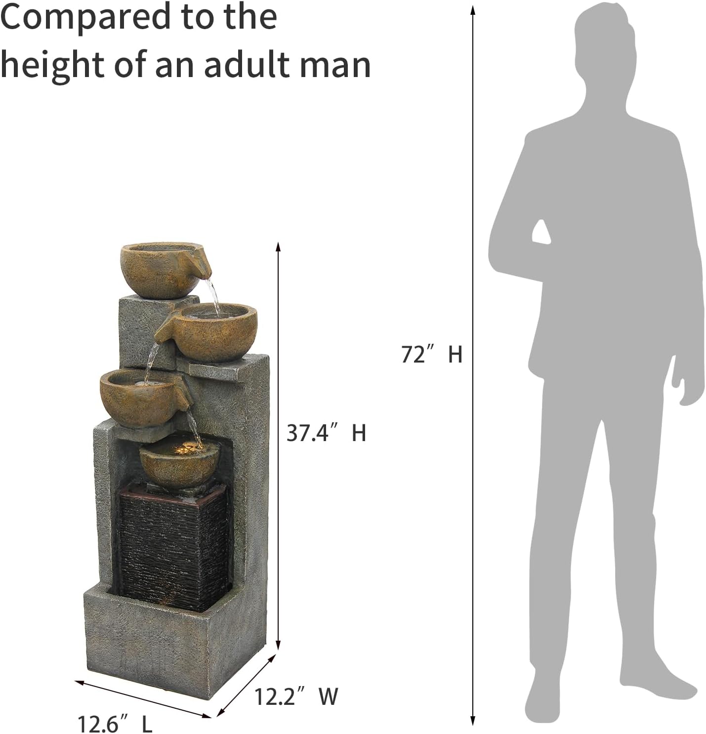YZM 5-Tier Water Fountain Outdoor Garden Waterfall Fountains Indoor Bowl Cascading Water Feature with Led Lights for Home Deck Patio Porch Yard Decor 37.4" H
