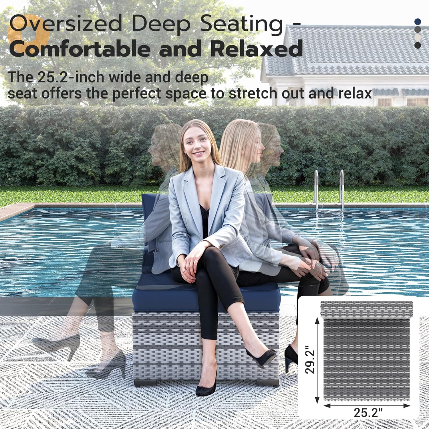 - Cushions for Ultimate Comfort: The 4" high-density foam seat cushion provides firm yet cozy support, while the well-filled back cushion offers a plush, cloud-like feel. Non-slip granules and tie straps keep them securely in place. Wrapped in durable 220D waterproof, fade-resistant fabric, these cushions withstand the elements while staying soft and stylish.