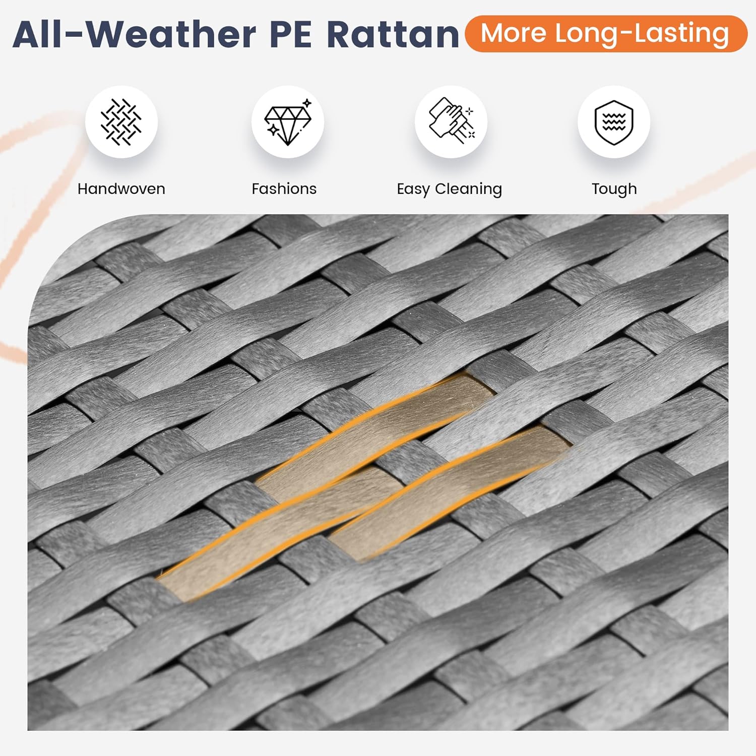 - Cushions for Ultimate Comfort: The 4" high-density foam seat cushion provides firm yet cozy support, while the well-filled back cushion offers a plush, cloud-like feel. Non-slip granules and tie straps keep them securely in place. Wrapped in durable 220D waterproof, fade-resistant fabric, these cushions withstand the elements while staying soft and stylish.