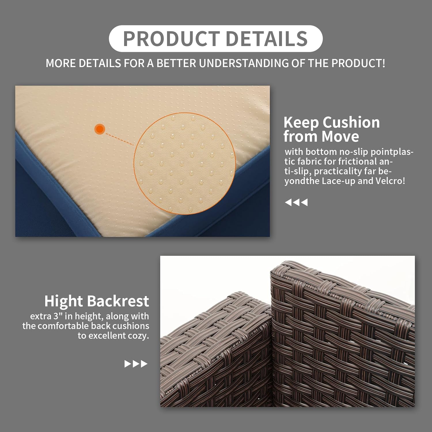 - Quality & Maintain: Delicate composite weaving with half-moon and round all-weather HDPE wicker material handwoven over fully-welded powder-coated steel framing makes outdoor patio furniture very durable and sturdy. Breathable 250G polyester Anti-UV and water-repellent fabric. Each piece is designed to withstand sunshine beating down and rainstorms rolling through.