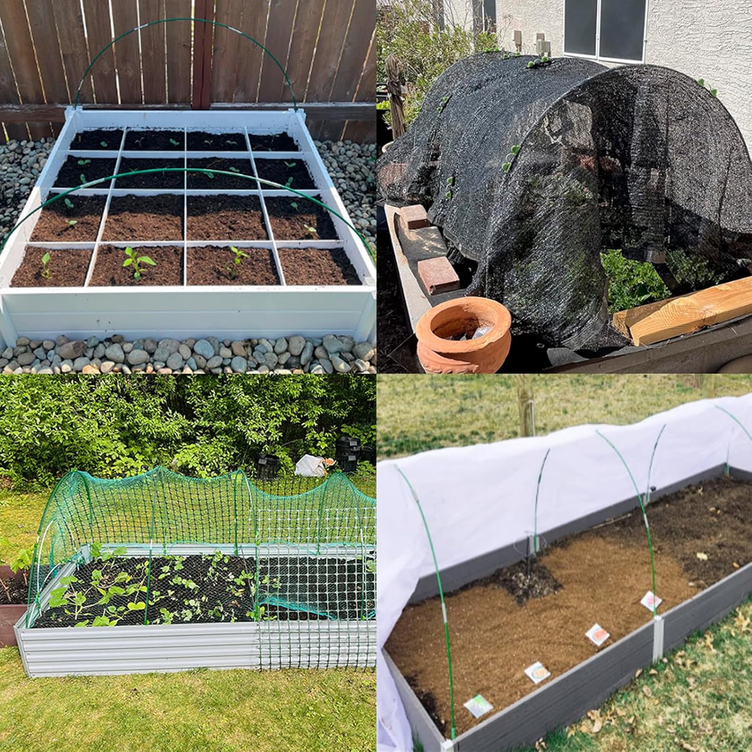 - 【APPLICATIONS】These versatile garden hoops are perfect for indoor and outdoor use, ideal for yards, vegetable gardens, and raised garden beds, providing an efficient solution for row covers.