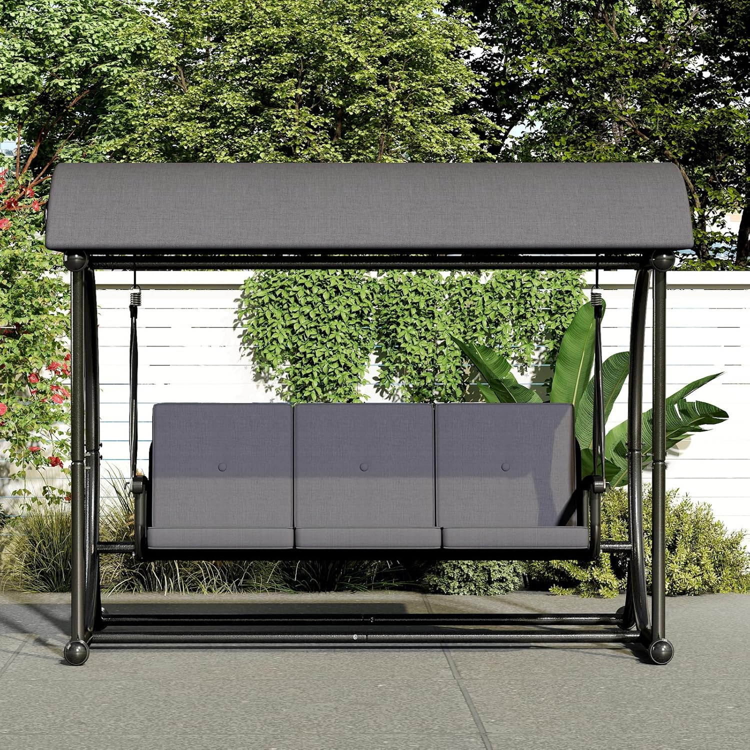 - Protective Canopy: Adjustable canopy to shield from direct sunlight, paired with thick, high-resilience foam cushions for ultimate comfort, allowing you to enjoy the outdoors comfortably. The canopy swing is perfect for resting or relaxing in the garden, lawn, patio or backyard on a sunny day