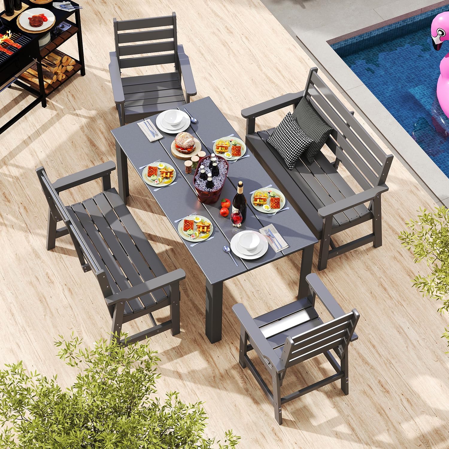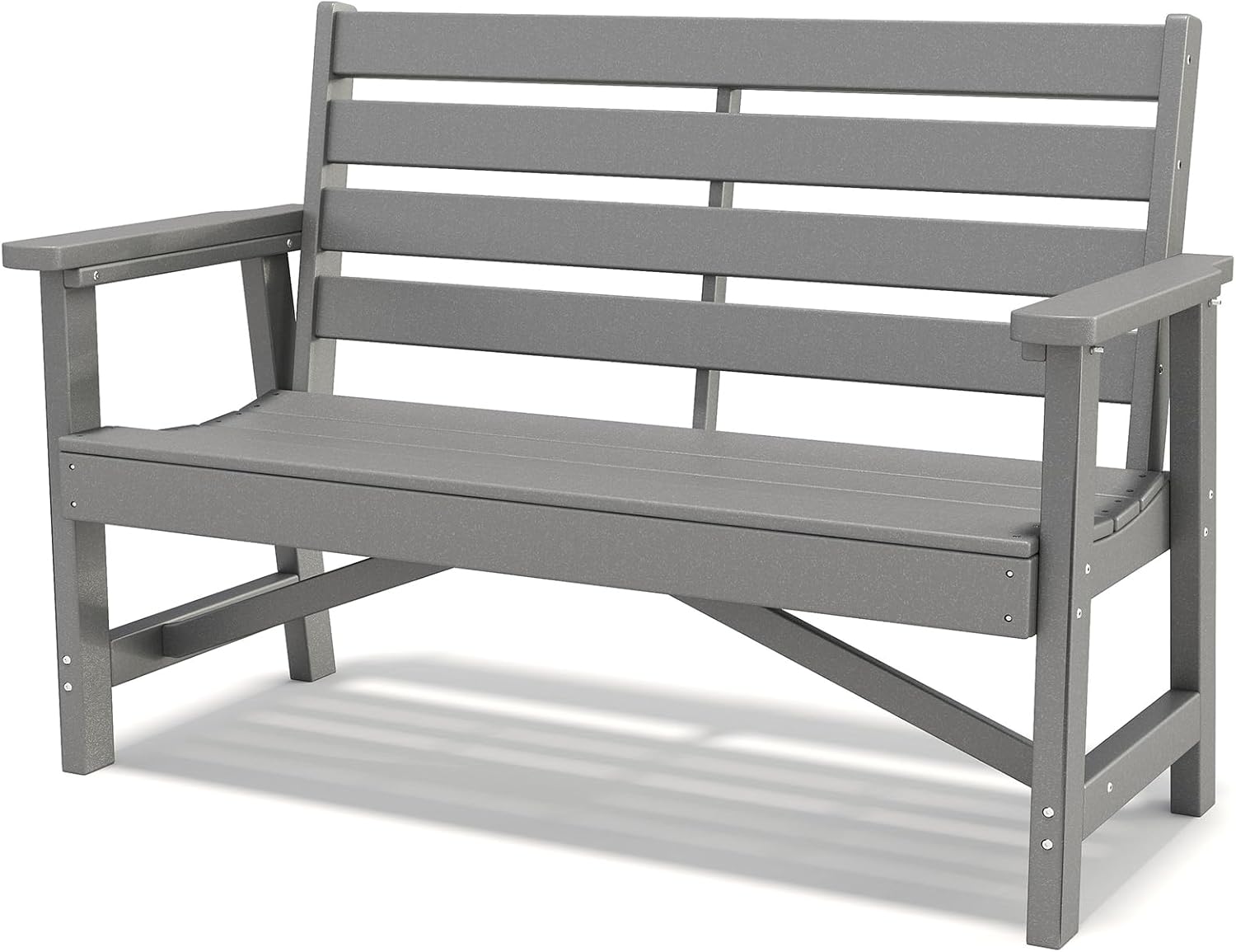 GREENVINES Outdoor Bench | HDPE | Garden Benches | All Weather | for Outdoors Patio Park Porch Outside Backyard | 2-Person | Grey
