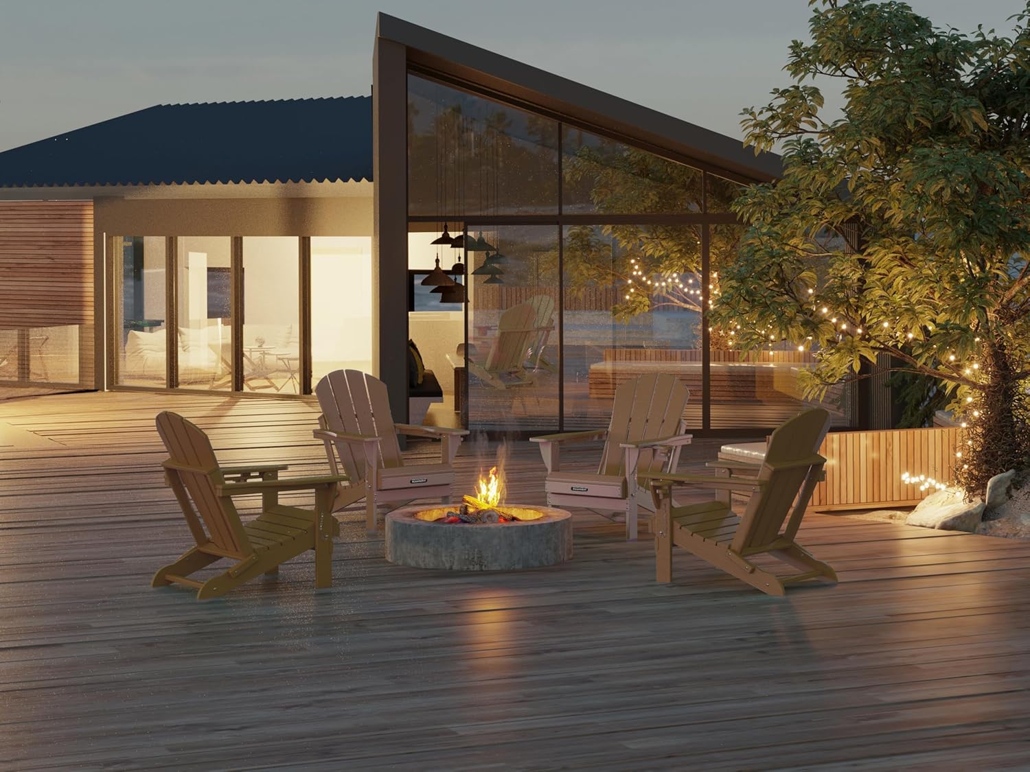 - Weather Resistant and Recyclable Material: The poly adirondack chair is made of weather resistant and UV-proof High Density Polyethylene composite material (HDPE), it will not crack, fade, peel and rot in any weather condition