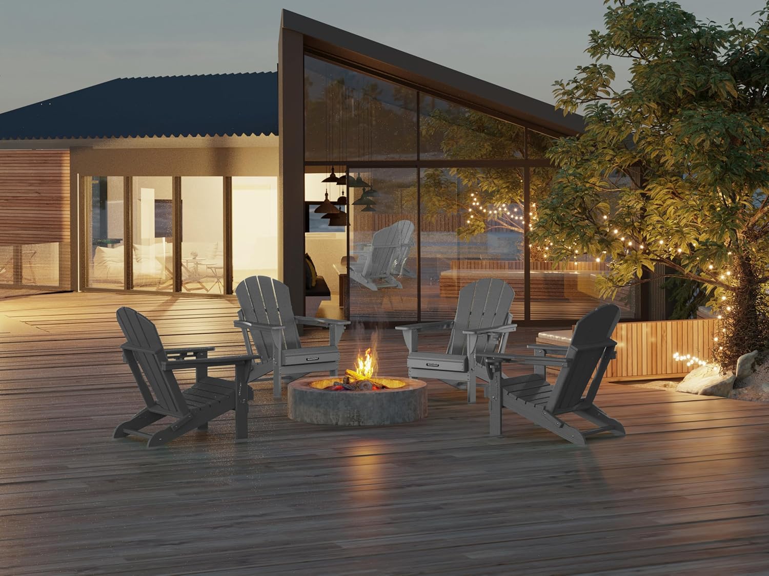 MUCHENGHY Folding Adirondack Chairs Set of 2 HDPE Weather Resistant, Patio Firepit Chairs, Sturdy Outside Chairs, Lawn Chairs, 15min Assembly 380lb Grey
