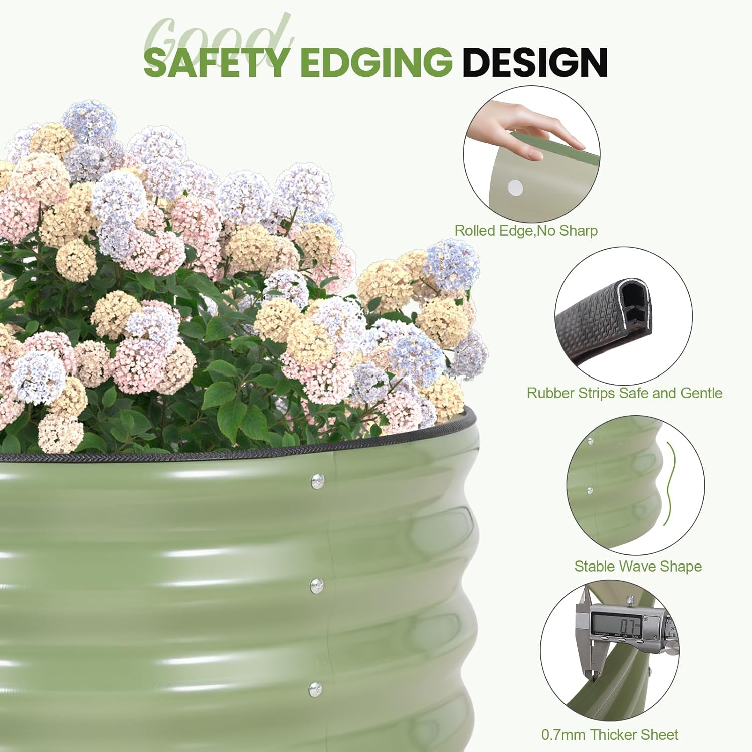 - 【Enhanced Structural Strength & Stability】 Made from thick galvanized steel with a protective spray coating, this round galvanized planter is rustproof and corrosion-resistant. Wave-shaped design ensures uniform surface force, provide excellent support and prevents deformation, making it a reliable choice for your garden.