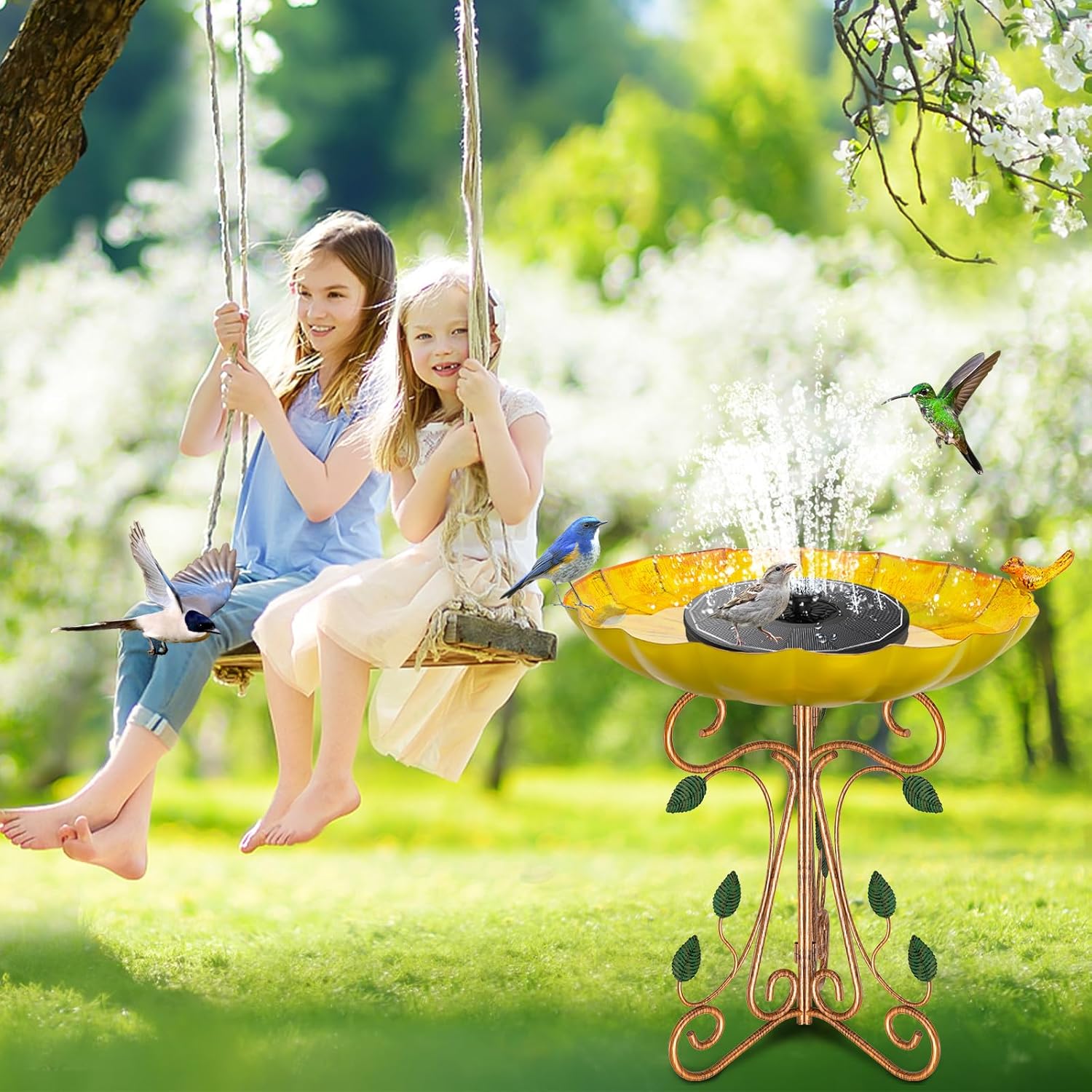 Vintage Metal Bird Bath for Outside, 13" Dia Birdbaths Bowl with Cast Iron Pedestal, Large Antique Bird Feeder with Folding Bracket for Outdoors Garden Patio Yard Decor (Retro Yellow)