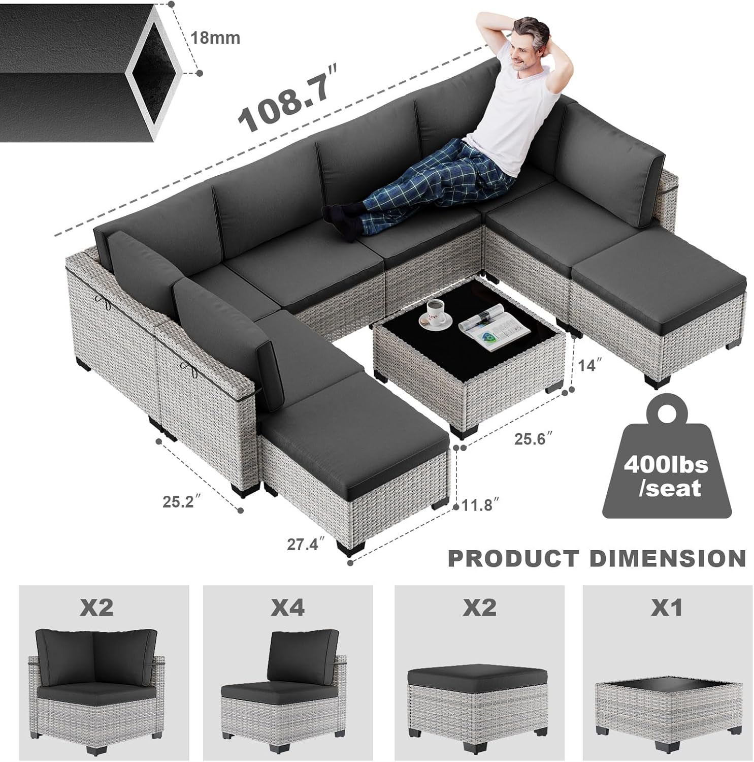- Modular Design:Customize your outdoor setup with the versatile modular design of this 9-piece patio furniture set. Whether you need an L-shape, U-shape, or separate seating arrangements, this set adapts to your space and occasion. Perfect for patios, balconies, or poolside settings, this multi-functional patio furniture allows you to create the ideal layout for lounging, dining, or entertaining guests.