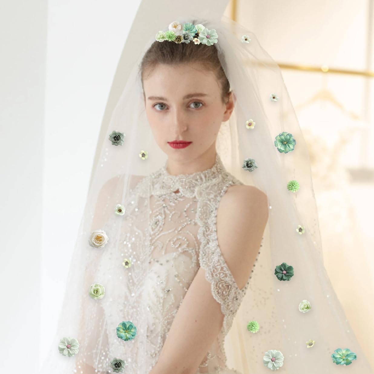 Faux Flower Heads Small Silk Artificial Flower DIY Fake Mini Flowers Rose Daisy Multicolor Flowers Craft Supplies for Wedding Party Wreath Graduation Season Party Home Decor (125, Green)