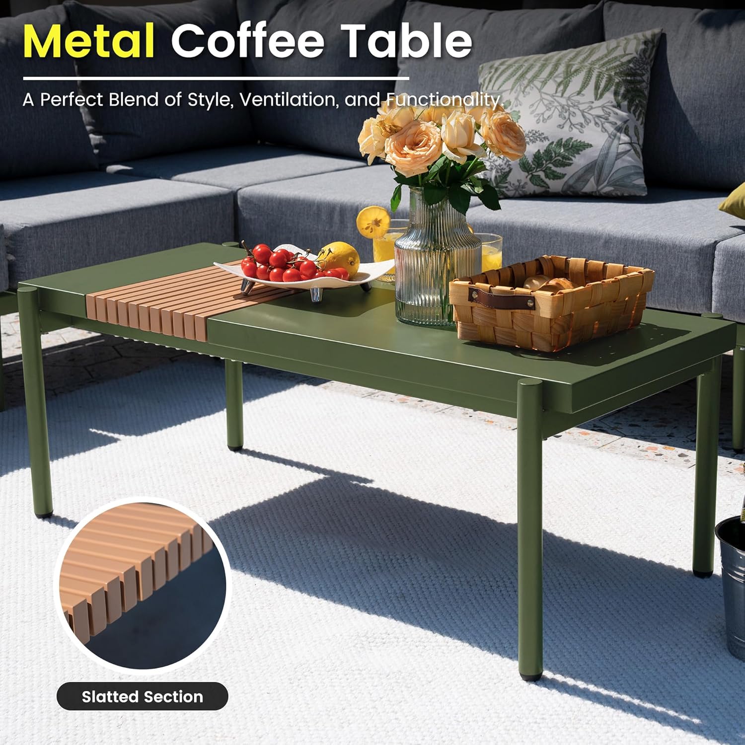 - Sturdy Metal Frame: The outdoor sofa set’s robust spray-painted metal structure promises exceptional stability and durability, so you can trust it will stand strong even through the seasons. Rust-resistant and built to last, this sectional will be your outdoor companion for years to come