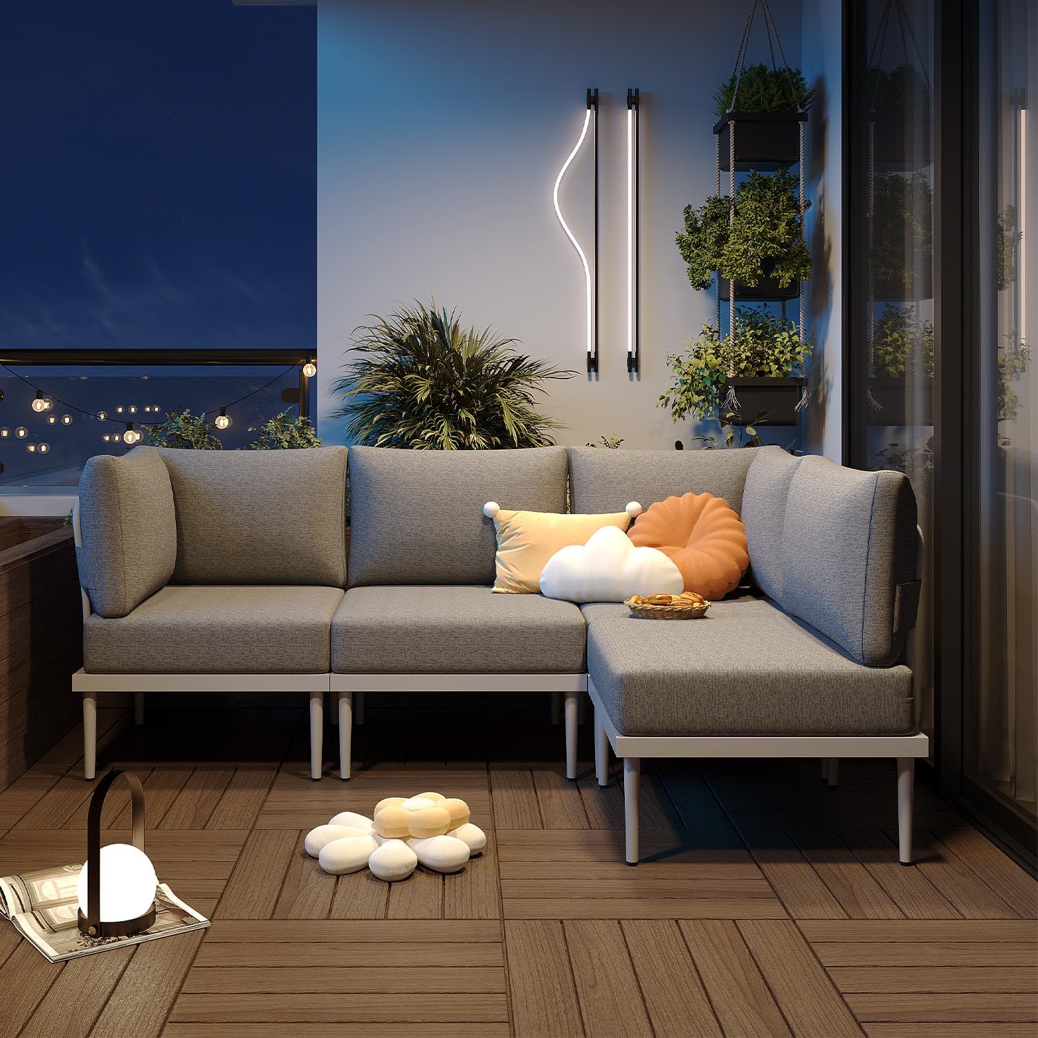 - Versatile Modular Design: Mix and match components to craft your ideal setup for gardens, backyards, decks, balconies, or terraces. From cozy nooks to large gatherings, this sectional adapts seamlessly, offering endless customization options for any outdoor occasion