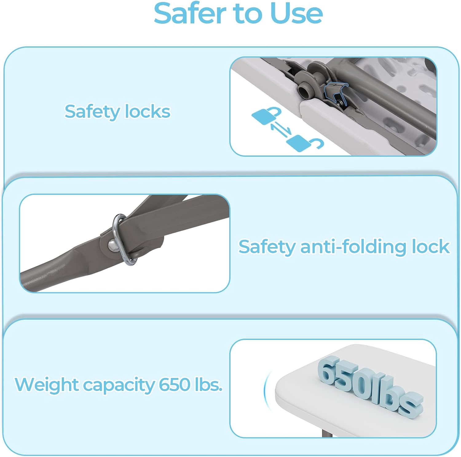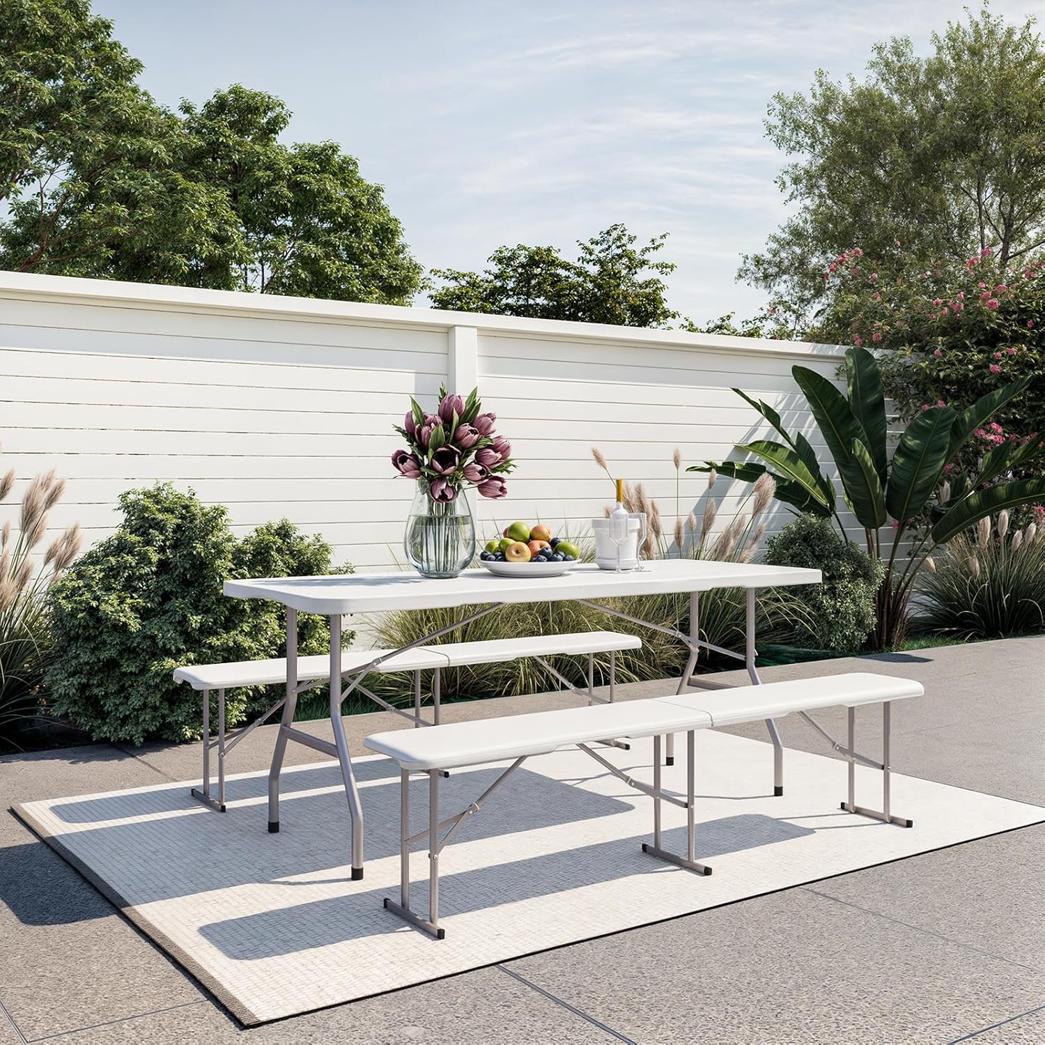 6ft HDPE Folding Bench, Foldable Seat with Sturdy Frame and Security Lock for Indoor and Outdoor, Multipurpose Entertaining Activities, Portable and Easy to Store, 2 Pack, White
