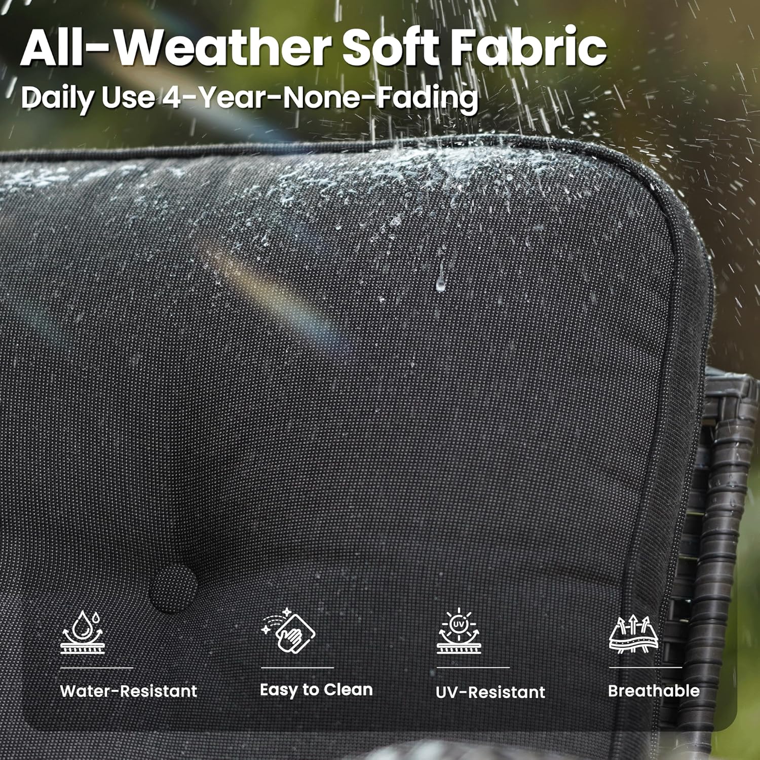 - Comfy Thick Cushion: Made of all-weather high-density waterproof coating fabric and upgraded thickened cushions, it has high resilience, good breathability, wear resistance and tear resistance. The cushion cover is zippered and can be removed for washing, and simple and convenient daily maintenance