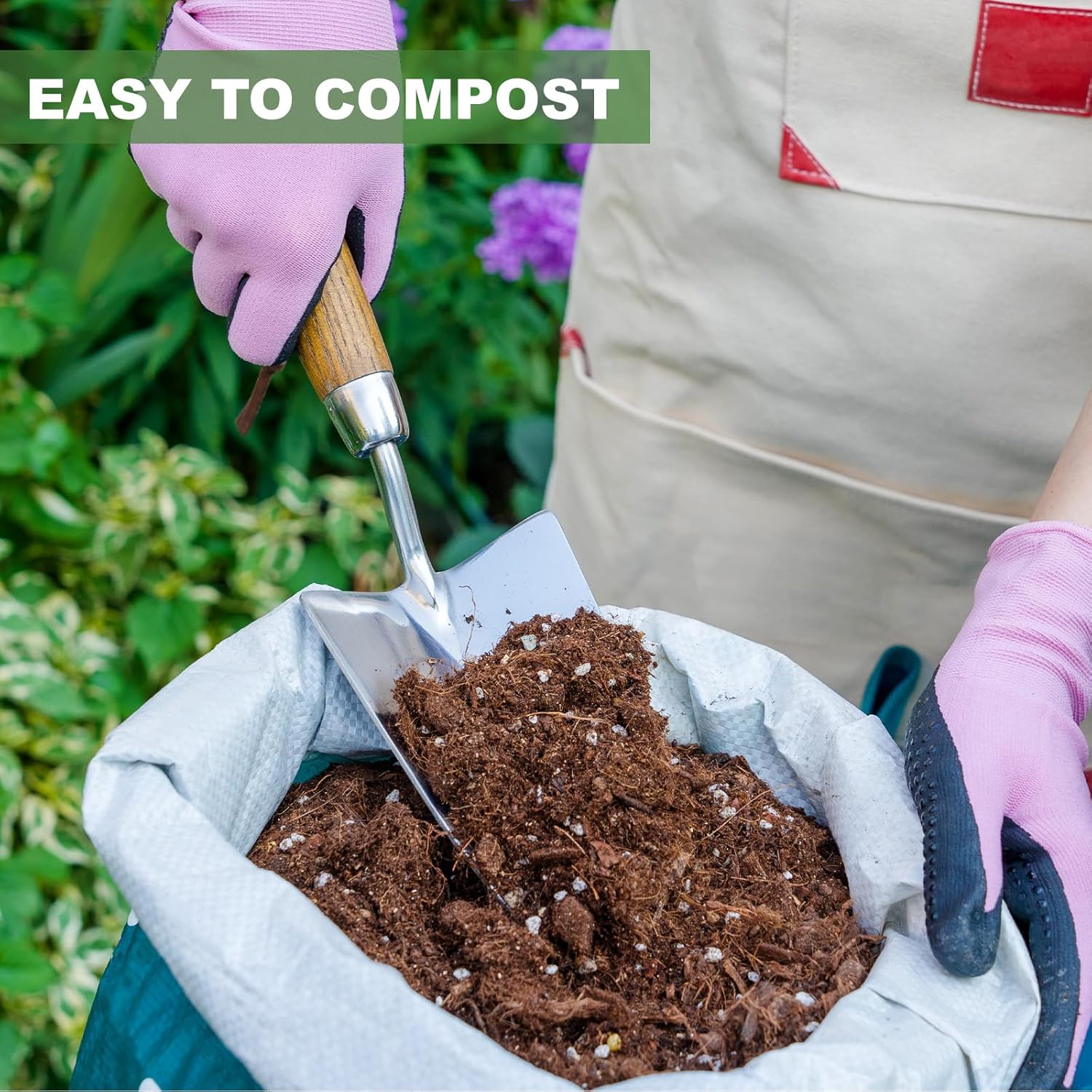 - 【Comfortable Grip Wooden Handle】The handle of the garden shovel is designed in an ergonomic streamline, which fits the natural shape of the hand when holding and using, which helps to ease the strain on arms and hands, even use for long periods without the fatigue of your hands. The wooden handle is 3,000 times sanded to a polished finish ensure smooth and free of debris, and is very comfortable to hold even without gloves.