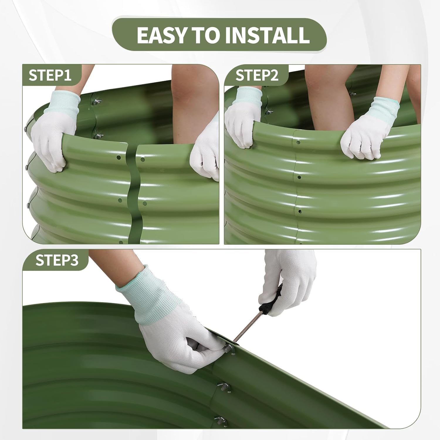 • 【Upgrade Quality & Structure 】The raised garden bed is made of thick galvanized metal with a surface spray coating, which is rust proof and anti-corrosion. Can be used for a long time. The oval design ensures uniform surface force and prevents deformation. More durable than other raised planter box, becoming a good helper for your garden